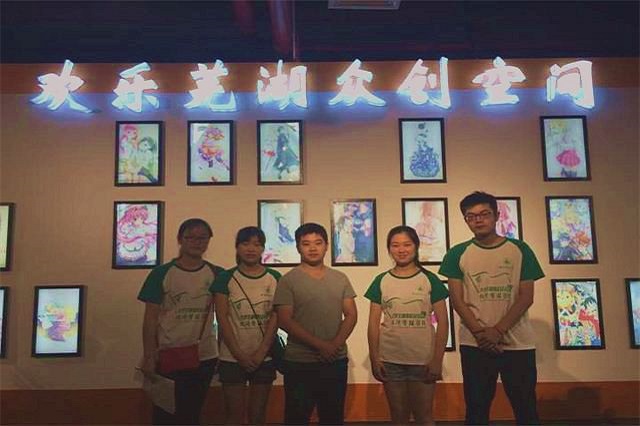 访谈结束,在王先生的盛情相邀下,我们团队对“欢乐芜湖”众创空间进行了参观活动。他们的最大亮点是在独具特色的创客环境中,于点滴处表现出丰富多彩的动漫艺术元素,将渗透着积极进取、拼搏向上精神的企业文化以最饱满的形态展现给所有人。“员工的本职工作是学习,进入社会后仍是要学习,要抓紧人生中最好的年纪拼搏”,在参观过程中,王先生发自肺腑地向我们展现了他的创客精神,并表示愿意为在校老员工提供更多的实习机会。