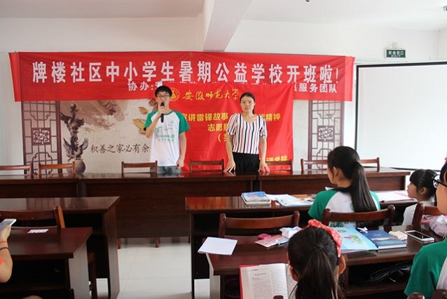 7月4日,m88官网新雷锋青年志愿者协会暑期社会实践活动正式拉开帷幕,将围绕“宣讲雷锋故事,弘扬时代精神”开展各种志愿服务活动。第一项志愿服务就是爱心支教。上午8点,团队的第一小分队准时到达鲁港街道牌楼社区开展“一对一”支教活动。