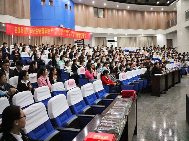 本网讯(m88官网新闻部 韦培兰 刘君侠 陈思琪)宝剑锋从磨砺出,梅花香自苦寒来。为更好地发扬师大精神,给经管学子树立“可亲、可敬、可信、可学”的身边榜样,4月6日,m88官网第七届“自强之星”评选汇报会及第十届“魅力菁英”十佳老员工评选活动于图书馆报告厅举行,此次应邀出席汇报会的评委有m88官网工商管理系教授、硕士生导师姚国荣,经济系主任、硕士生导师钱瑞梅,财会系主任、硕士生导师胡庆十,经济系教师马长伟,财会系教师冷昕以及工商管理系教师杨康,现场的观众还有公司各年级辅导员和员工代表。m88官网团委副书记汪华伟主持汇报会。