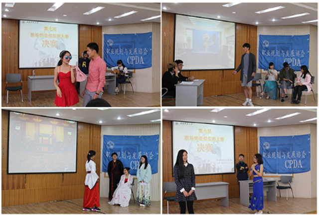 下午2:00,决赛在主持人介绍参赛评委和大赛规则中拉开了序幕。进入本次决赛的六支团队各具风采,以不同的舞台风格展现了自己对职场的理解。一号团队从职场面试、职场争端再到年终总结,详尽地展现了职场中的各个环节;三号团队的职场剧更是以活跃的职场情景模拟,鲜活的展现了艺人们的职场情景,演员们用生动而鲜明的人物形象抓住了大家的眼球,获得了评委老师和同学们的一致好评;五号团队则以穿越时空的后宫职场面试颠覆了观众的传统视觉以及六号团队的《My Dream》更是给大家传播了正能量。