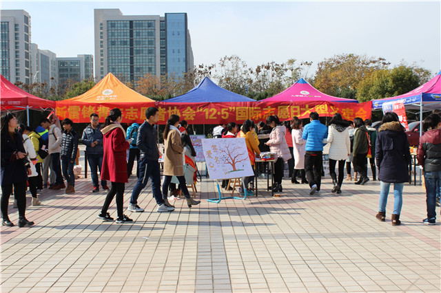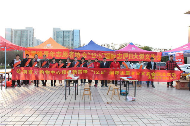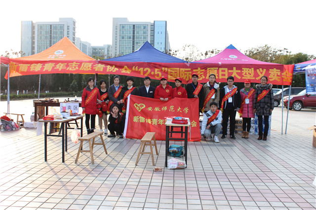 姚制清)为迎接“12·5”国际志愿者日,新雷锋青年志愿者协会在校内举办了大型爱心义卖活动,义卖所得善款将用于资助繁昌县平铺镇新林九年制公司家庭困难的孩子们。活动期间,众多志愿者义务加入了义卖活动,共同将爱心志愿服务进行到底。