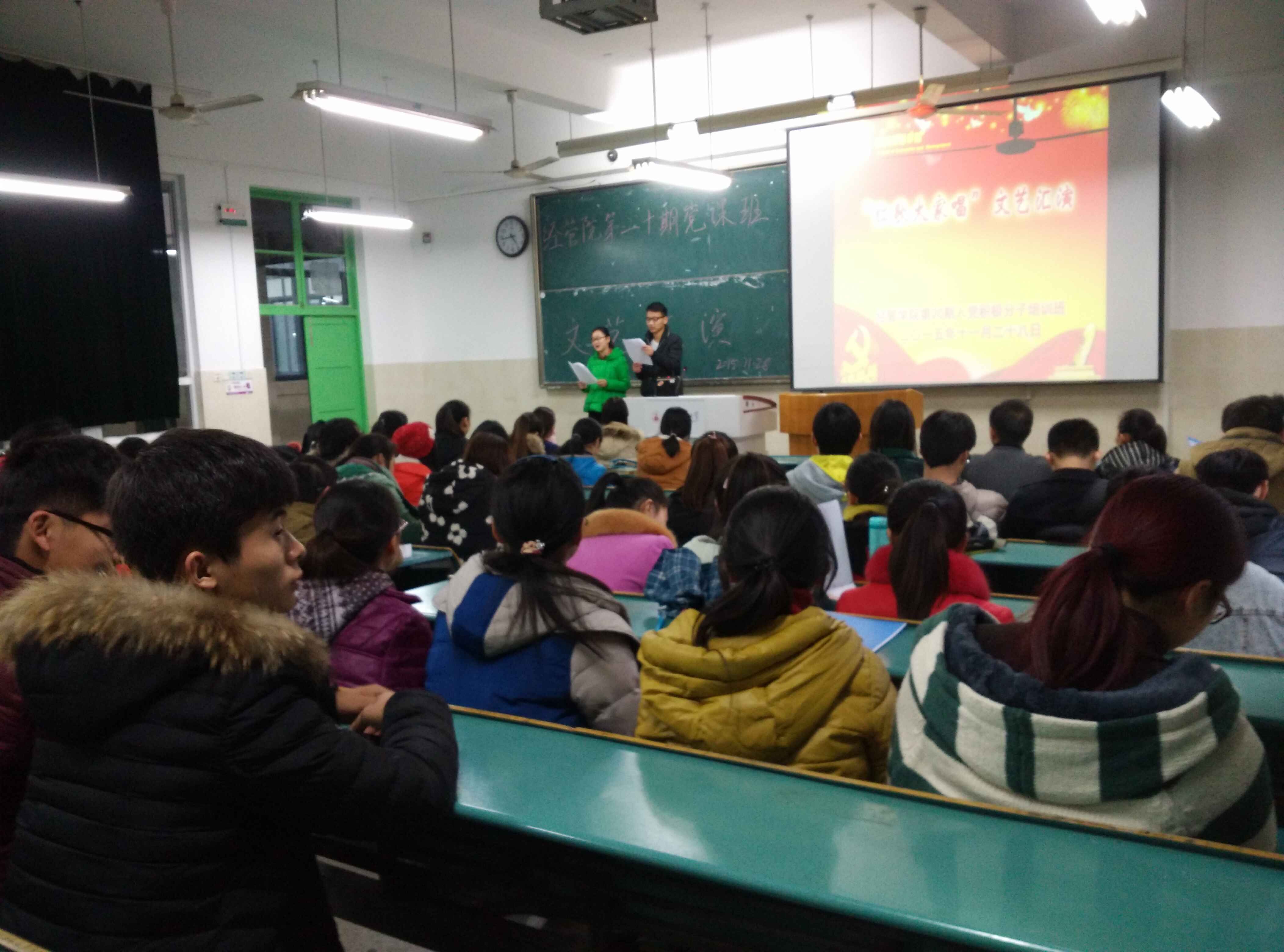 周京京)2015年11月30日下午,m88官网分党校第20期党课班在2010503教室成功举办以“红歌大家唱”为主题的文艺汇演。党课培训班全体班委成员以及各小组的成员参与本次文艺汇演。