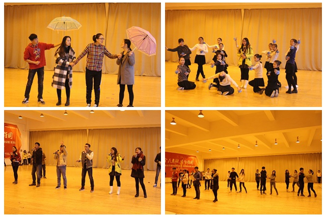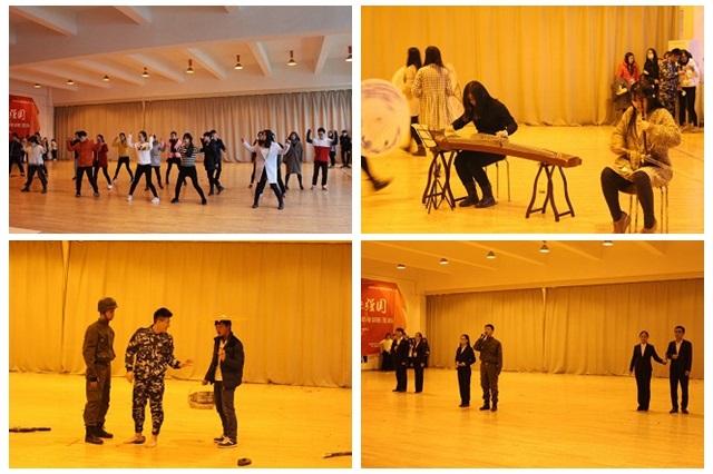 下午一点整,随着音乐的节奏,铿锵有力的鼓点声,开场歌舞《旗开得胜》引爆全场,拉开了本次联排的大幕。本次联排共分三个篇章。四位主持人带着饱满的热情,上台致开场词,表达了对老师、观众的欢迎以及对新年的期盼,并打开了第一篇章的大门——沐猴而歌,学海无涯度经纶。第一个节目是开心豆干团队带来的《雨伞下的你我他》,曾获得青春心语校园心理剧银奖。不愧是得奖作品,演员动作表演到位,剧情内容丰富,题材贴切好人,动人处甚至让在场的评委和观众拿出了面巾纸。沐猴而舞,青春年少正当时,第二篇章中,歌伴舞《化身孤岛的鲸》通过三对舞蹈演员的舞姿,伴随恬静动人而悠长的歌声,营造了温婉感人、如诗如画的意境,让人陶醉。舞蹈类节目《佤城姑娘》更是给大家带来了热情开放的异域风情。小品类节目《大话西游》更是创造性的插入与辅导员的互动,赢得广泛好评。沐猴而礼,满腔热忱辟征程。第三篇章,更多的是激励。值此世界反法西斯胜利70周年之际,小品《战地惊雷》通过战场上的矛盾,让人们不忘历史,展望未来。诗朗诵《父母之河》男女搭配朗诵,配合着气势悲壮的音乐,表达着中华儿女对黄河的感恩之情。最后,在《相亲相爱》的歌舞中,为这次联排画上了圆满的句号。