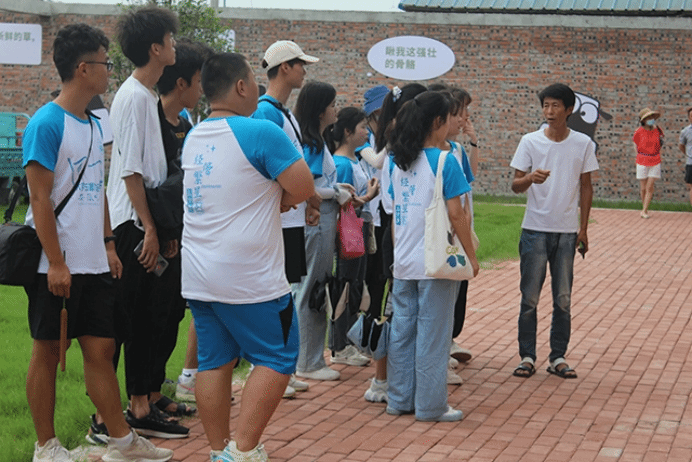 “咱益益是安徽农牌老字号嘞!”。一抵达目的地,队员们就受到了牧场相关负责人的热情接待。进入牧场后,在带领人刘元方对益益乳业企业发展史的一番详细介绍之下,队员们了解到安徽益益乳业有限公司的前身是于1956年建立的国营淮南机械农场,而团队现在参观的这个牧场是改革开放初期建成的奶牛二厂,目前已发展成益益特色生态园,公司不仅在内养殖奶牛提供优质鲜奶,也开放牧场体验服务招待参观游客。
