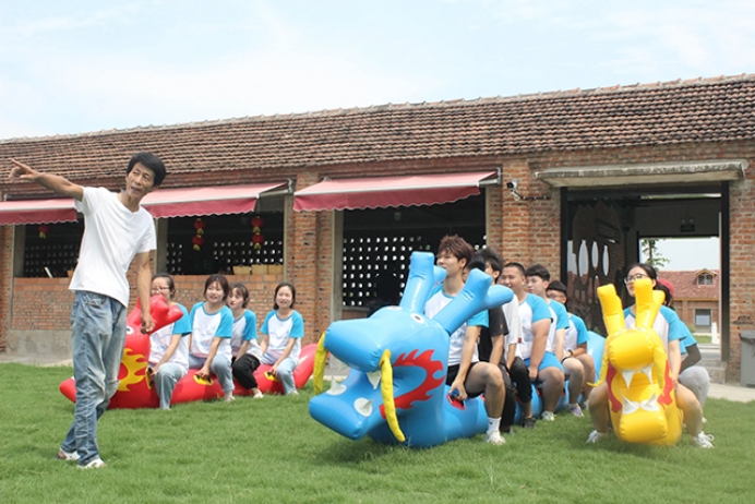 在参观过程中,队员们受邀进入牧场休闲馆体验包括射箭、给小奶牛喂奶、蹦床,滑梯,淘金矿等游玩项目。此外,成员们还参加了馆内组织的一场别开生面的“旱地龙舟”比赛,大家喊着口号奋力迈步,欢笑不绝于耳,收获了沉浸式游园的乐趣。
