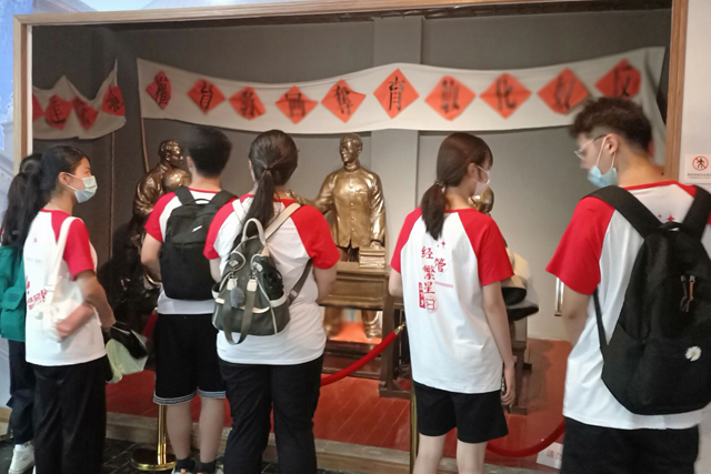 7月16日上午,团队全体成员前往王稼祥纪念馆进行参观。在芜湖这片红色热土上,王稼祥走上了革命的道路。王稼祥是忠诚的马克思主义者、杰出的无产阶级革命家、党和人民军队卓越的领导人。团队成员首先前往王稼祥生平陈列馆进行参观,馆内藏品丰富、资料详实。大家参观了与王稼祥同志有关的书籍稿件、文献以及个人遗物等,深刻了解了王稼祥在中国革命的各个历史阶段的重大贡献和丰功伟绩。展馆内的放映机里播放着王稼祥同志的革命生涯纪录片,大家纷纷驻足观看。馆内还展示了王稼祥写给王柳华的信件,字迹雄浑,文字激昂,字里行间都体现了他浓厚的爱国情怀和革命家的进步思想。