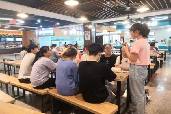 队员们下午三点在一食堂集合,此次交流会以各位队员分享收集到的芜湖党史故事为主要形式。