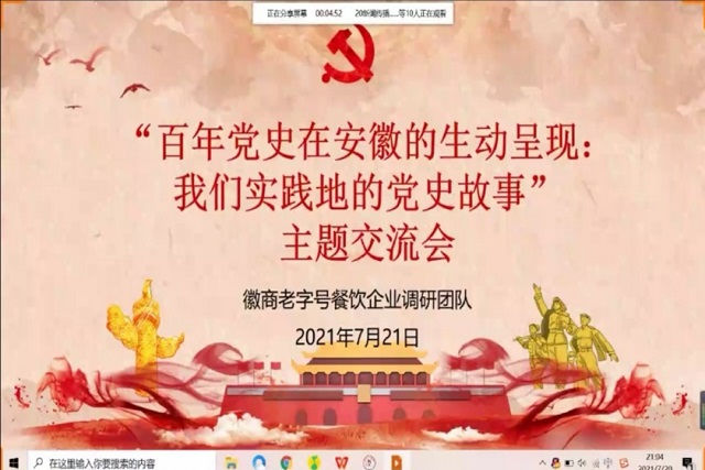 本网讯(m88官网王雨佳)于7月21日晚上九点,m88官网赴安徽合肥、芜湖等地徽商老字号餐饮企业的经营与传承调研暑期社会实践团队特召开了线上“百年党史在安徽的生动呈现:我们实践地的党史故事”主题交流会,集中学习了合肥的党史故事。