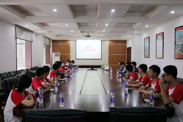 首先,我们在马钢集团的会议室与马钢集团的部分工作人员开展了一场座谈会,参会人员有马钢特钢公司设备管理部团支部书记杨帆、马钢特钢公司埃斯科特钢团支部书记丁宜、马钢特钢公司优棒分厂精整作业区作业长宛加旺、马钢特钢公司高线分厂团支部书记戴睿、院团委书记吕洋老师以及团队成员。团队负责人吕洋老师先介绍我们经管学子重走习近平总书记安徽足迹暑期社会实践专项团队项目相关情况。团队成员也简单进行自我介绍。马钢集团公司接待负责人丁书记也向我们介绍了公司的背景,发展目标,团建工作,青安工作。团队成员积极提出自己的一些疑问,也一一得到了解答。负责人跟我们分享了自己的工作理念,希望同学们都能奉献在一线,"在关键路口,你的选择比努力重要",提醒同学们要做好选择。