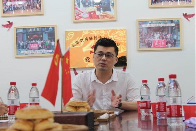 来到刘鸿盛总公司,办公室主任程先生接待了团队一行并欣然接受了队员们采访的邀请。随后团队成员针对前期准备的调研提纲对其进行访谈交流,刘主任介绍了刘鸿盛特色小吃并邀请我们前往刘鸿盛加工厂参观。访谈结束后,团队成员前往了刘鸿盛实体店面(宿州路店)进行简单的实地调研。通过与两位企业管理人员进行采访交流和问卷反馈后,队员们对于合肥老字号餐饮品牌的传承与发展有了更深的认识。