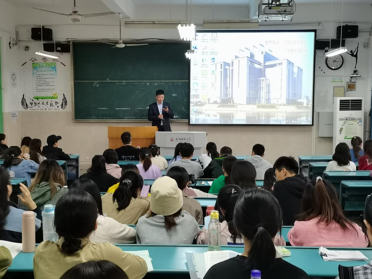 宣讲会伊始,冯立松结合一段公司宣传片向同学们介绍了浙商中拓的发展历程、企业荣誉以及相关业务。他表示,安徽分公司目前正处于快速发展和上升时期,企业期待更多优秀人才加入,一起并肩,为梦想阔步前行。接着,黄兴围绕着公司的福利体系,向同学们介绍了“人员能进能出,职位能上能下,薪酬能多能少”的人才激励机制,并对公司的晋升通道、业务范围以及发展空间进行了简要说明。同时,冯立松、黄兴两位员工还以学长的身份与同学们进行了积极互动。他们分享了自己的职业规划和求职经历,并就同学们提出的面试流程、业务范围以及技能培训等方面的问题逐一作出了详细解答。宣讲会结束后,毕业生纷纷向企业投递了简历,并与企业人员进行了进一步的交流,宣讲会取得圆满成功。