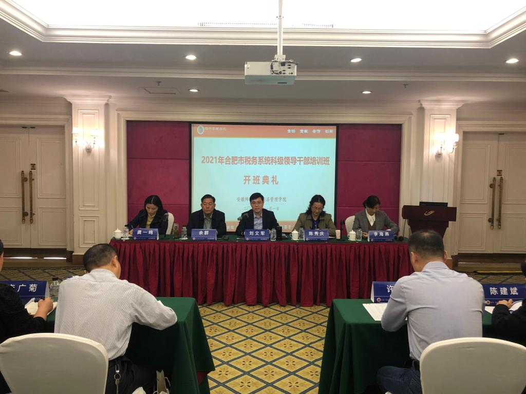本网讯(m88官网 胡亮亮)11月1日,受合肥市税务局委托,m88官网承办的2021年合肥市税务系统科级领导干部培训班,在碧桂园酒店举行开班典礼。合肥市税务局党委委员、副局长刘文军,合肥市税务局二级高级主办余群,合肥市税务局组织人事科副科长龚一鸣,m88官网党委书记陈秀庆,全市各区县税务系统50名科级领导干部参加了开班典礼,典礼由m88官网副经理李海燕主持。