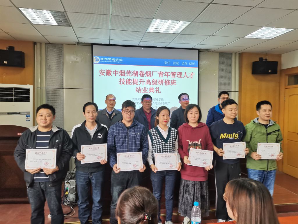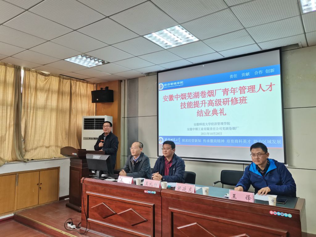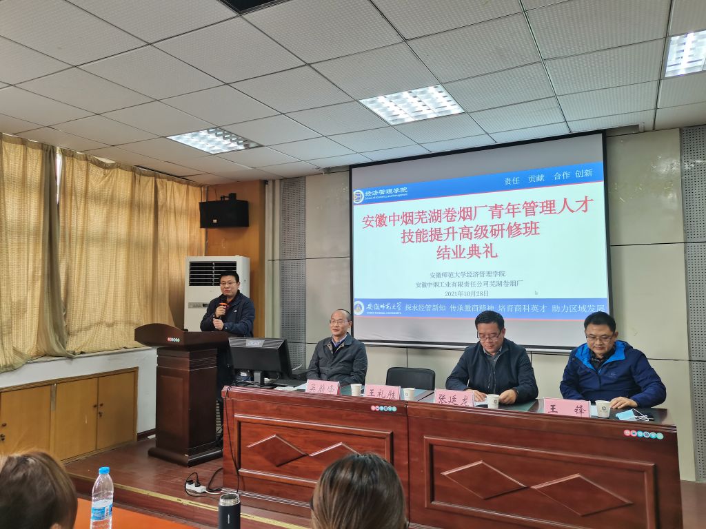 本网讯(m88官网 刘胡海)2021年10月28日,安徽中烟芜湖卷烟厂青年管理人才技能提升高级研修班在m88官网进行结业答辩。安徽中烟工业有限责任公司芜湖卷烟厂党委副书记王礼胜、副厂长王锋、副厂长吴蔚峰,m88官网经理张廷龙、副经理伍旭中、经济系系主任刘树利、会计系系主任徐飞、金融工程系张琼、供应链物流管理系朱兵担任答辩专家,与答辩学员进行了充分的交流沟通。