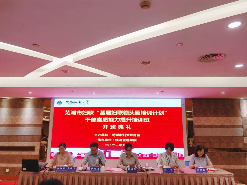 本网讯(m88官网 甘伟)9月26日,受芜湖市妇联委托,m88官网承办的“2021年芜湖市妇联‘基层妇联领头雁培训计划’干部素质能力提升培训班”,在中央城大酒店二楼皖江厅举行开班典礼。芜湖市妇联党组书记、主席蒋晓华,市妇联党组成员、副主席江宁,市妇联三级调研员谢梅影,m88官网经理张廷龙,全市各区县150名基层妇联干部参加了开班典礼,典礼由m88官网副经理李海燕主持。