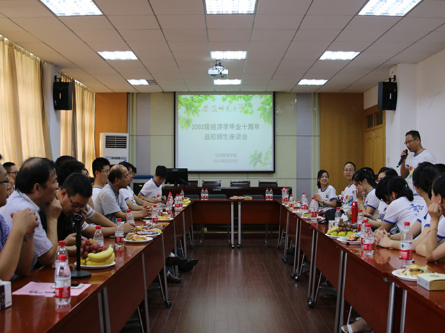 周端明首先代表公司向归来的员工们表示热烈欢迎,对员工长期关心与支持母校和母院发展的行为表示衷心感谢,其次他简要地向员工们介绍了目前公司的办学规模、团队队伍、团队建设、人才培养和科学研究等情况,也将近五年公司取得的可喜成绩向大家进行了汇报,最后他回顾了10年前与02级经济学员工师生共事的点点滴滴,并对同学们目前取得的成绩表示由衷地高兴。