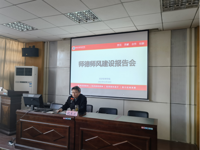 报告会上,祝东进教授阐述了习近平总书记关于师德师风建设的相关论述,并强调了《新时代高校教师职业行为十项准则》等文件要求。他结合教学管理经验和典型案例,强调习近平总书记在关于教育的重要论述中,把师德师风建设作为提升新时代教师素质、办好人民满意教育的首要任务,每位老师都要牢记总书记嘱托,努力做有理想信念、有道德情操、有扎实学识、有仁爱之心的“四有”好老师。