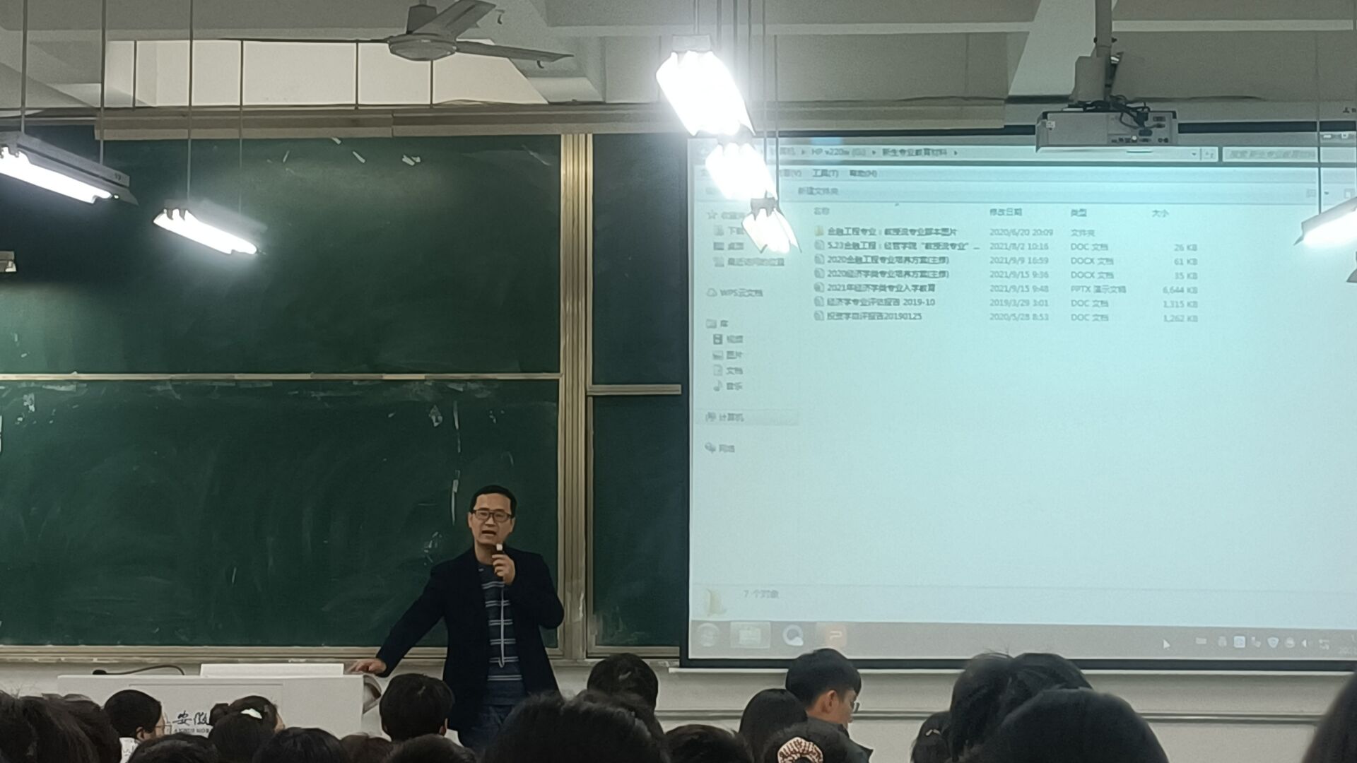 本网讯(m88官网 吴敬之 陈醒醒)为了帮助2020级经济学类员工更好地了解经济学和金融工程专业的基本情况、未来发展方向以及相关学科竞赛情况,m88官网2020级经济学类专业分流指导会于11月26日下午4:40在行知楼2070201教室举行,会议邀请任以胜、胡小文、于琼、甘伟四位老师为同学们进行专业分流指导,辅导员吴敬之老师和全体2020级经济学类同学参加本次会议。