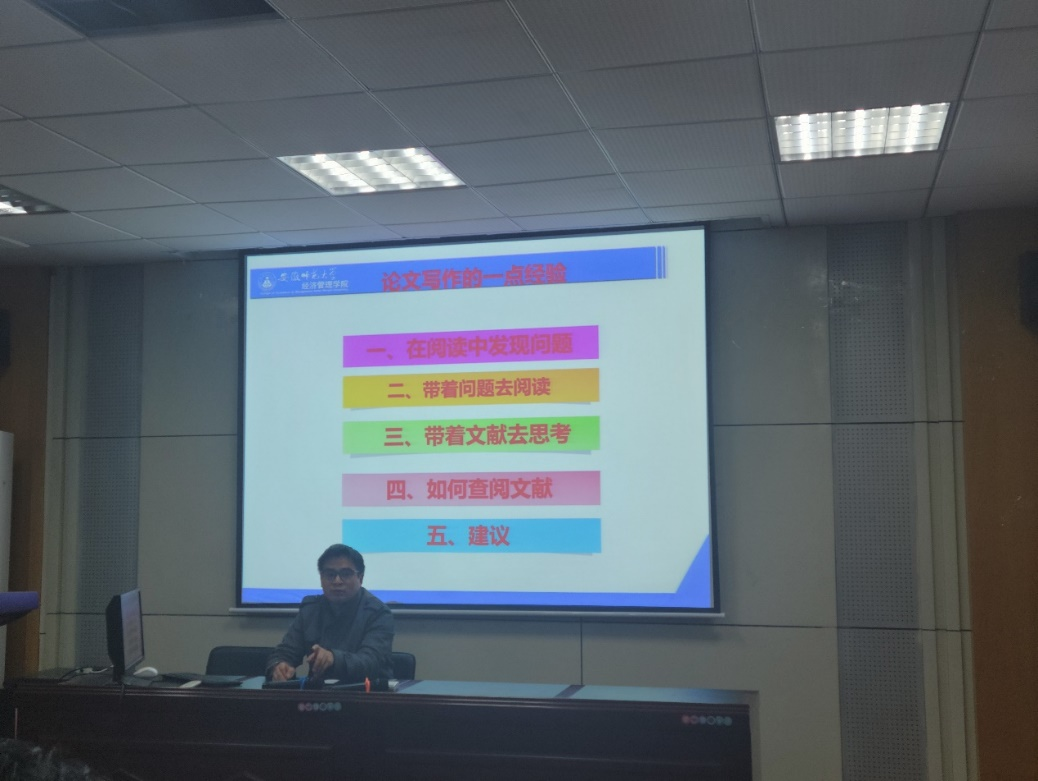 最后,马长伟结合自身论文写作经历,从论文选题思路、论文结构各部分写作技巧等方面,阐述了如何指导和引导员工正确选题、准确写作的方法。他强调做学术要发挥个人主观能动性、带着问题去看问题、多阅读综述类论文、学会善于从微小的经济现象中发现问题,思考问题并查阅文献去解决问题。
