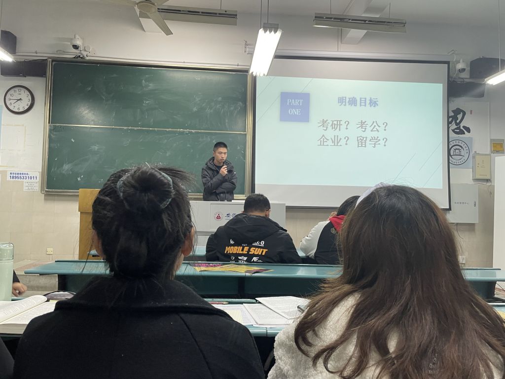汪苇杭则是先提出在大学的开始要有明确的目标,自己要知道是要考研,考公,进企业还是留学,不要虚度大学的宝贵时光。随后,他对自身经历做出了分享,表明自己是在大四的时候没有考上研究生,但是通过了国考,从而进入了现在的岗位。接着,他从自我认知,兴趣爱好,个人需求三个方面探讨了自己对于择业的看法。随后,他对于公务员报考三种方式:国考,省考,选调生进行了分析并向同学们介绍了金融行业,同时他也强调,不要轻易贷款,不要相信网贷,校园贷。最后,他对日常工作方式和对当前职业的满意度,公务员招聘要求等同学们提出的问题作出解答。