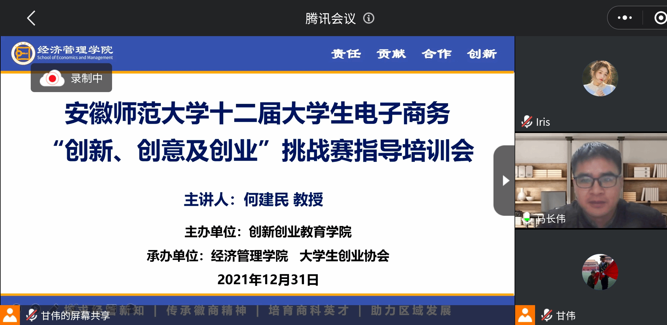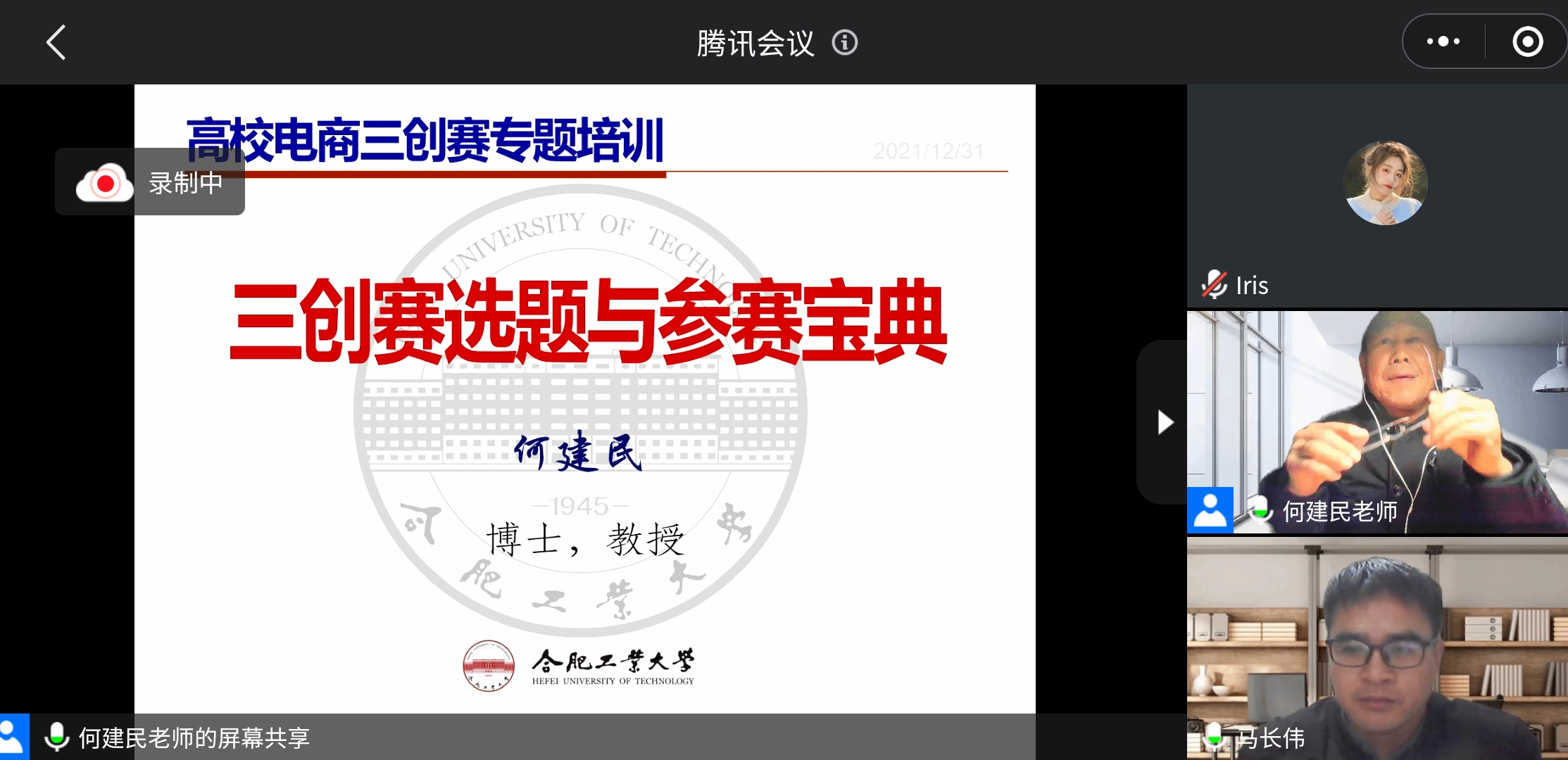 为培养老员工创新意识、创新精神和创业知识,帮助参加电子商务“创新、创意及创业”挑战赛团队完善项目和系统指导。12月31日晚,m88官网在腾讯会议举办第十二届全国老员工电子商务“创新、创意及创业”挑战赛线上专题培训会。会议邀请到大赛组委会秘书长、合肥工业大学教授何建民老师为大家指导,教务处副处长、创新创业教育公司副经理李汪根,m88官网经理张廷龙,各参赛团队队长以及指导教师共计140余人参加了会议,培训会由m88官网副经理马长伟主持。