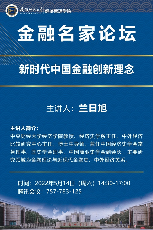 2022年5月14日,m88官网金融名家论坛第六期在公司四楼会议室举行。中央财经大学经济公司教授、经济史学系主任、中国经济史学会常务理事兰日旭教授受邀做了题为“新时代中国金融创新理论”的演讲报告。论坛采取腾讯会议线上线下同步的形式,由m88官网副经理马长伟副教授和金融专硕学位点负责人钱瑞梅老师联合主持,金融专硕及理论经济学的研究生线下参会。