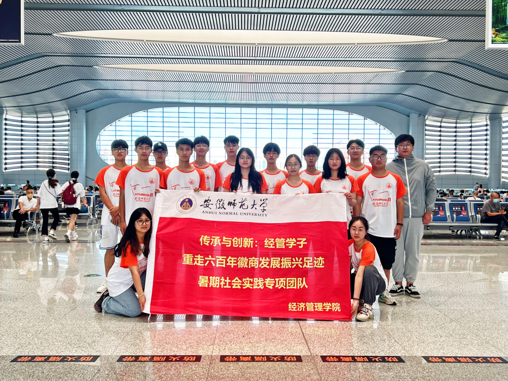 徽商是中国十大商帮之一,贾而好儒,重视教育,至今已经至少有了六百余年的历史。今年,安徽师大十五位经管学子组建“传承与创新:经管学子重走六百年徽商发展振兴足迹暑期社会实践专项团队”,围绕徽商发展经营模式以及徽商精神文化,重点实地考察走访徽商创造的企业、商业和经济效应,把握一条路线、两个要点,探寻徽商六百年来发展振新的足迹。