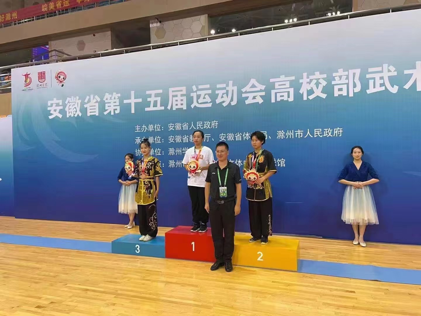 7月26日,安徽省第十五届运动会高校部武术比赛在滁州高教科创城文体中心手球馆举行。m88官网2021级工商管理类1班李可可、2021级ACCA卓越会计班丁妙祺分别获得高校组丙组南拳冠军、高校组甲组南拳冠军,斩获两枚金牌。