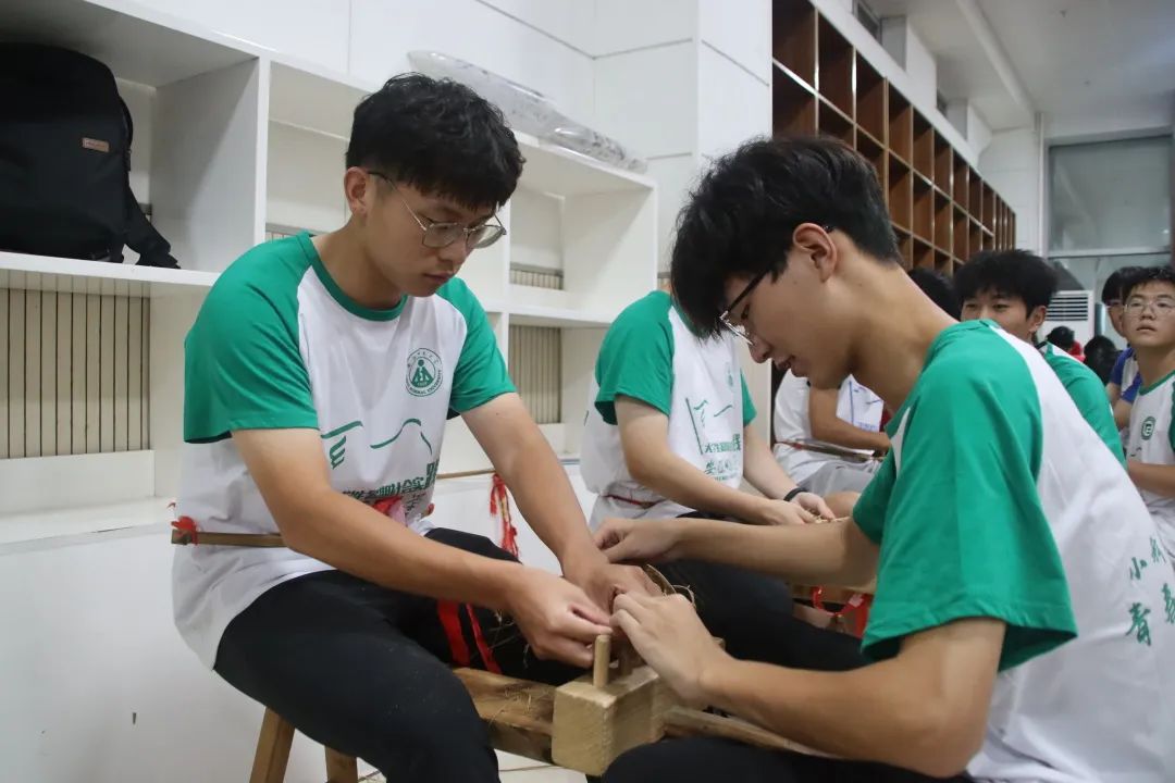 “打草鞋来,草鞋好,草鞋是咱们的传家宝。穿上草鞋,走如飞,险山恶水,当平道。”一堂以“学习红军艰苦精神”为主题的草鞋编织教学呈现在队员面前。两位老乡进行亲身指导示范。“一系一搓一挽一编一压一敲,草鞋轻松编”在老师手把手的指导下,员工们有模有样地编起来,一条麻绳一上一下,经纬交织,时而散开,时而收拢,如穿梭一般,一股一股地编上去。
