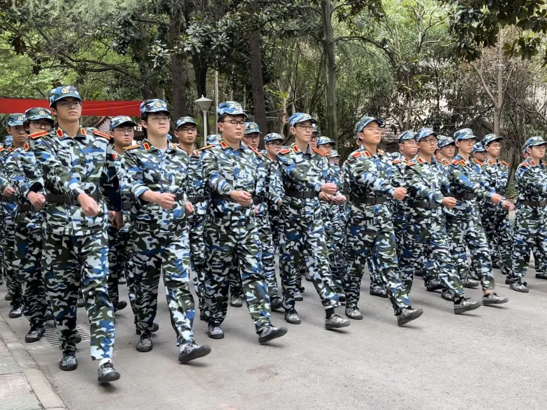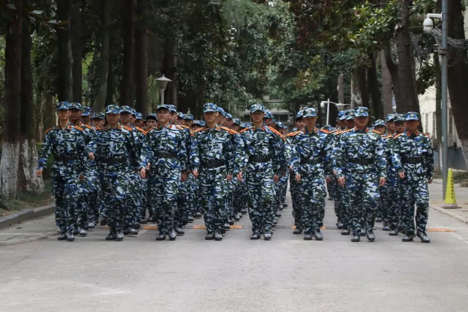 激昂的口号准时将清晨的校园唤醒,统一的迷彩服构成靓丽的风景线。2022级新生军训正在如果如荼地开展,经管学子都精神抖擞地投入到每一项军事训练当中。一群身穿迷彩服的活力青年整齐地站着军姿,有力地踏着正步,喊着响亮的口号,唱着激昂的军歌。他们以整齐划一的队列、斗志饱满的状态展现了经管学子昂扬向上的精神风貌。