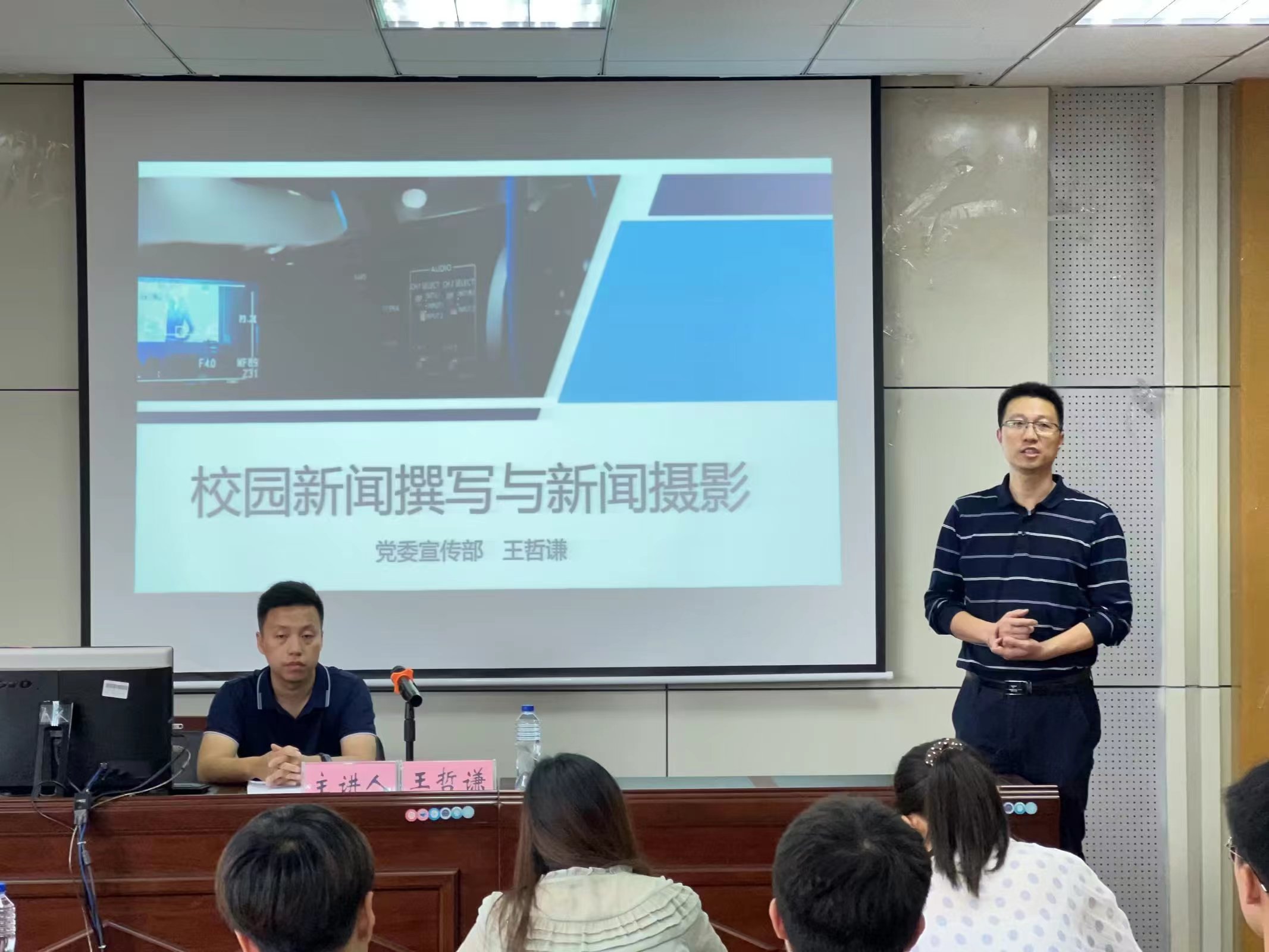 近日,公司邀请公司党委宣传部王哲谦开展校园宣传报道专题培训。公司党委副书记陈刚锋、副经理李海燕,各行政科室负责人、全体专兼职辅导员、团学组织员工骨干和班级宣传委员参加。培训会由陈刚锋主持。
