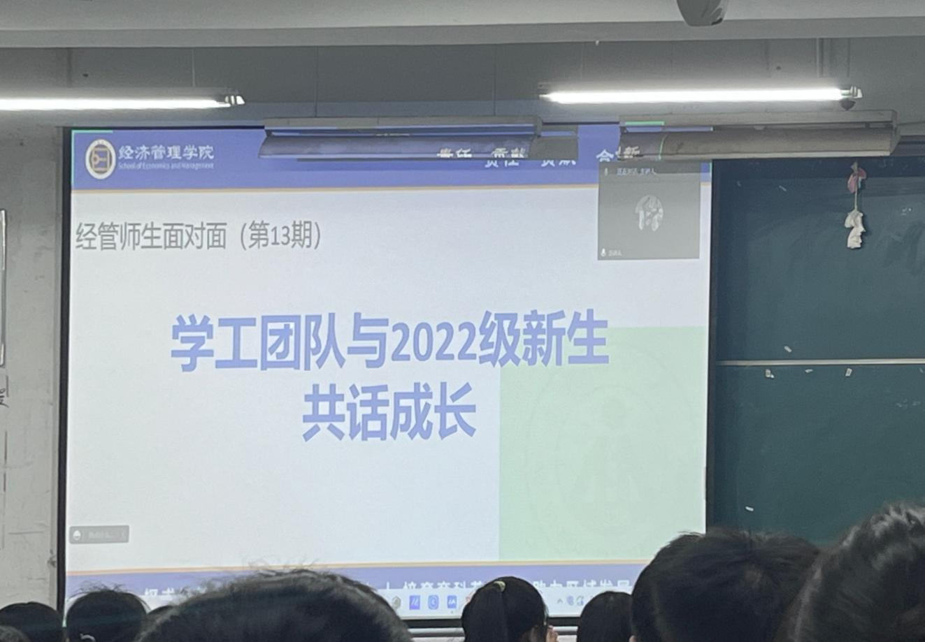 为增强2022级新生对于m88官网的熟悉和认可,进一步提升归属感和凝聚力,10月21日晚,m88官网在天门山校区主教学楼206教室开展“经管师生面对面”活动,学工团队通过线上线下相结合的方式与2022级新生交流学习,共话成长。公司党委副书记陈刚锋主讲,全体专兼职辅导员和538名2022级新生参与。
