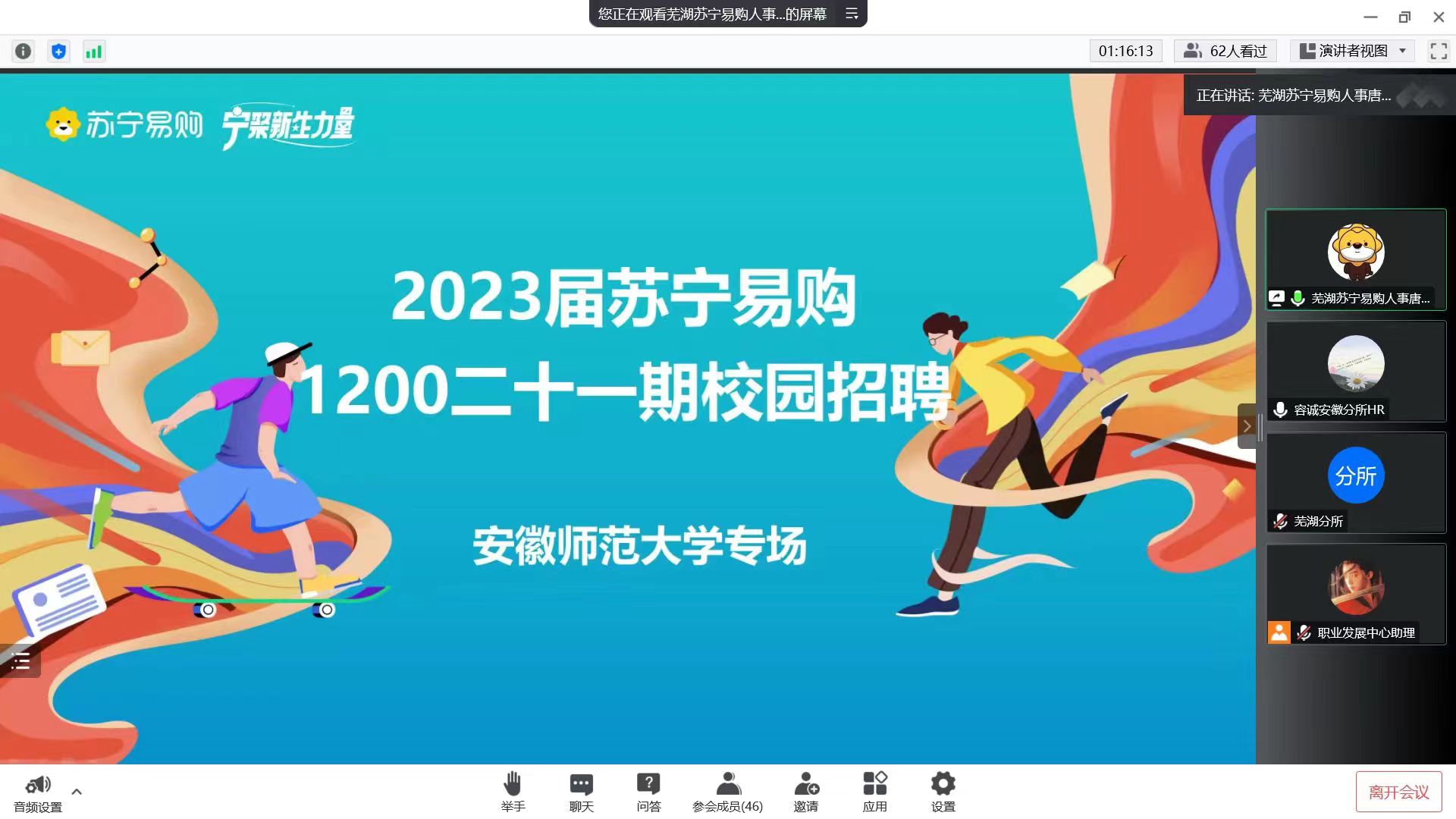 为帮助2023届毕业生搭建就业平台,m88官网于10月26日下午举办2023届毕业生秋季校园招聘宣讲会,会议采取线上宣讲方式。参会企业为容诚会计师事务所、苏宁易购集团股份有限公司(股票代码:002024)。公司部分2023届毕业生参加。