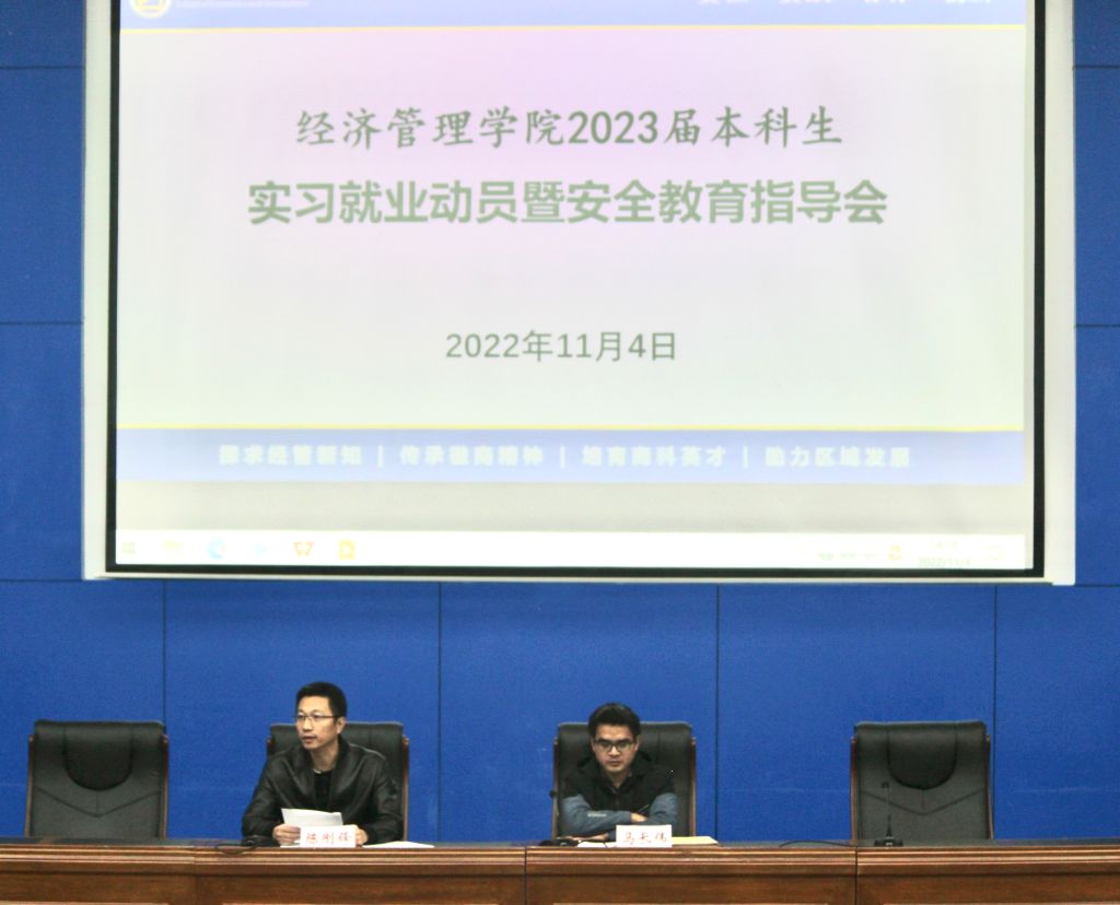 为了全面推进毕业生的实习就业工作,提高毕业生实习安全防范意识,公司于11月4日下午在敬文报告厅开展2023届本科生实习就业动员暨安全教育指导会。公司党委副书记陈刚锋、副经理马长伟、系主任代表、指导教师代表、毕业班辅导员以及全体毕业生参加,会议由毕业班辅导员于琼老师主持。
