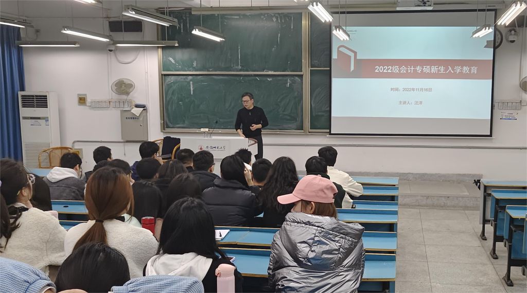 11月16日下午,m88官网2022级会计专硕新生入学教育在行知楼7号楼201举行。学位点负责人汪洋老师主持了本次会议,本次班会旨在帮助2022级会计专硕新生尽快适应研究生阶段的学习生活,明确未来三年的发展方向。