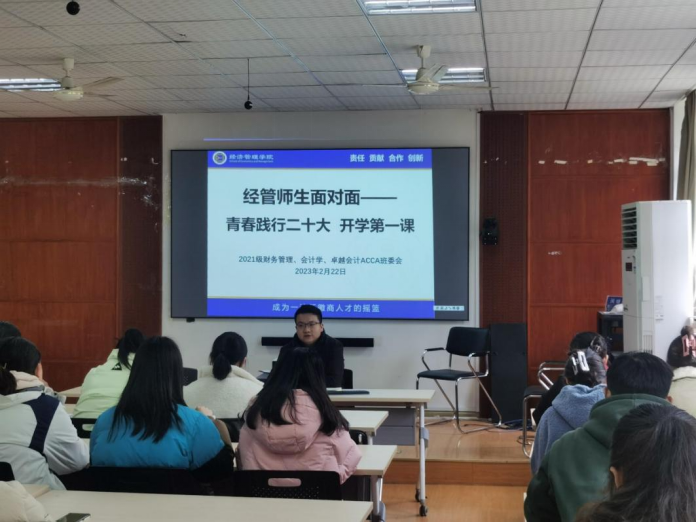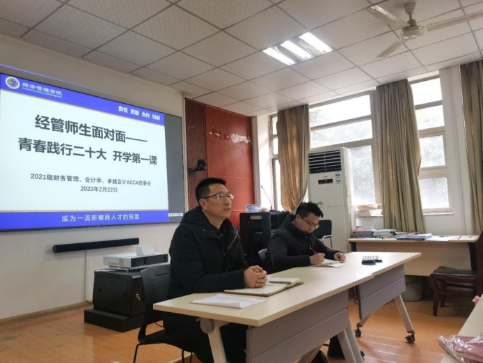 新学期新气象,为了进一步推进班级班委会建设,帮助专业分流后班级班委适应性问题,2月22日下午3点,m88官网2021级财务管理、会计学、卓越会计ACCA在公司行政楼一楼党电教室开展了开学第一课暨新学期班委会,公司党委副书记陈刚锋出席会议,会议由辅导员刘胡海主持。