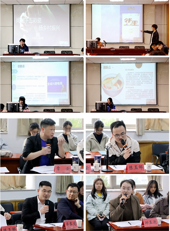 各参赛团队依次进行项目路演,着重汇报项目的创意与创新点。路演结束后,公司员工,国家级人才计划专家、正高级工程师、安徽中日维丰新技术研究院总经理章云;芜湖跨境电商协会执行秘书长、安徽环斯科技有限公司总经理陈玉邹;芜湖江城大数据技术有限公司总经理辛其龙;黄山禹沐生态农产品有限公司总经理荣玉凤;浮造电商联合创始人陈威;中国赛宝(安徽)实验室综合部部长邱玉迎等企业家与指导教师们对参赛作品进行详细的点评与指导,肯定了参赛同学们的认真准备与创业热情与,并针对项目创新点的设计与创业设计方案的落实提出了宝贵的建议。
