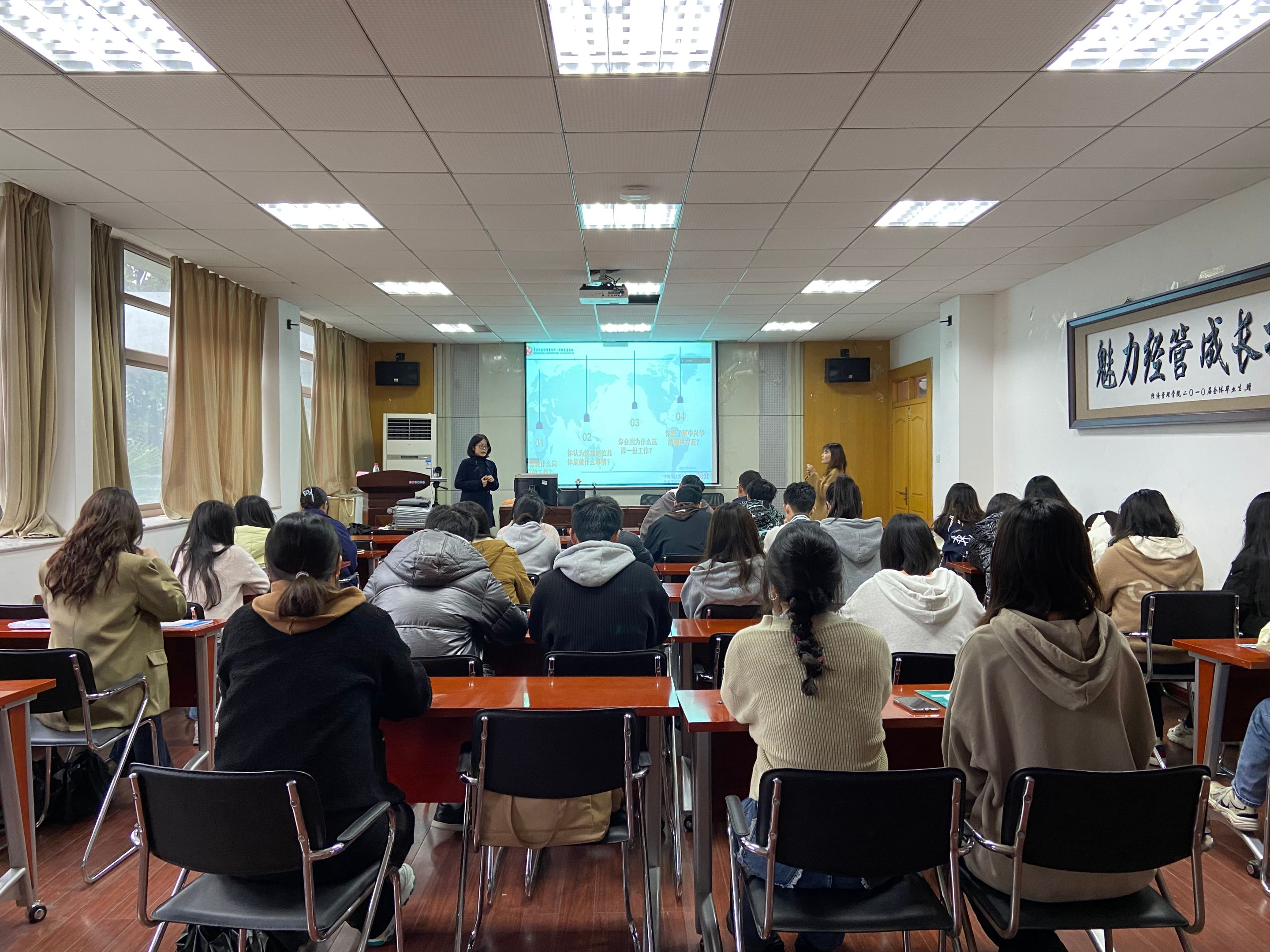 中兴华会计师事务所江苏分所人事主管刘美与同学们积极展开互动,通过提问了解了毕业生们的就业意向、实习经验、工作期待等情况,以此引入对于企业的介绍。他从从历史沿革、经营业绩、组织结构三个方面进行,展现了中兴华会计师事务所的企业实力。紧接着,刘美详细地说明了招聘岗位及要求。她表示,企业内有完善的职级晋升体系,并为员工提供了非常优厚的福利待遇,包括五险一金、节日福利、年终奖、考试假、孝敬费、研究生班、员工旅游等,引发了同学们的极大热情。随后,她说明了本次春招的应聘流程并强调,简历筛选、面试甄别通过后可签约成为实习生,再通过培训考核后方能转正。最后,企业负责人组织简历的现场投递和初面。