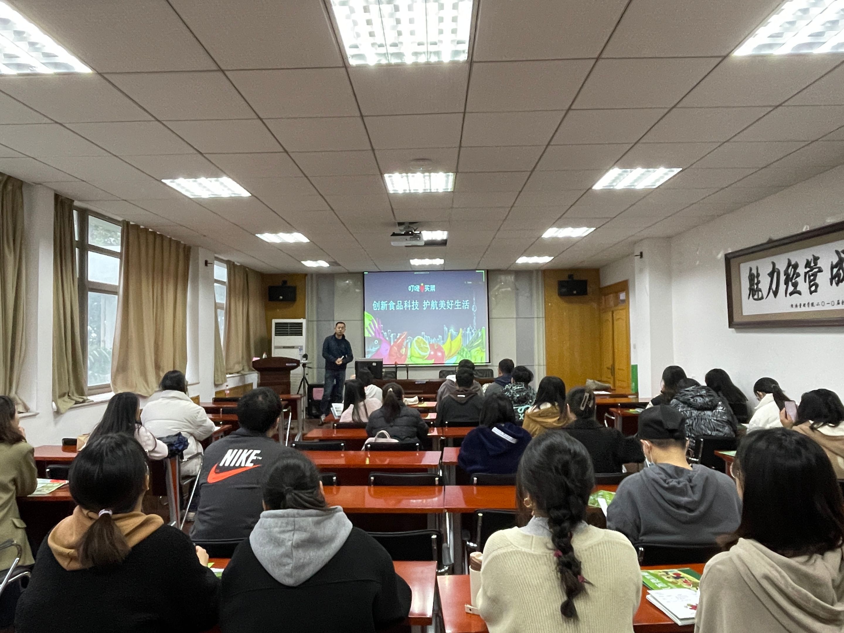 叮咚买菜人力资源总监聂海波先从创业历程开始对公司进行详细的介绍,为同学们详细分析了企业的业务模式,解读了前置仓配货模式与其他电商平台配货模式,凸显了叮咚买菜对解决生鲜产品储存、流通、配送中诸多问题的不懈努力及其独特优势。接着,他从业务地图、融资情况、行业地位、生鲜电商市场等方面展现了叮咚买菜的资金实力以及其未来的无限潜能。同时,他指出,作为中国前十大电商之一,叮咚买菜利用电商的发展优势主动承担了支持农业与精准扶贫的社会责任,在疫情之下选择农户订单的方式保障农民利益,并且推出叮咚听声买菜app实现视障人士使用自由。随后,聂总监介绍了叮咚的自有品牌、数字化自营农场、叮咚小满等的发展方向,表现了叮咚买菜对完善供应链的追求。最后,他向同学们解读了企业校招岗位需求及薪资待遇,其中着重介绍了咚力生计划,并期待同学们的加入。