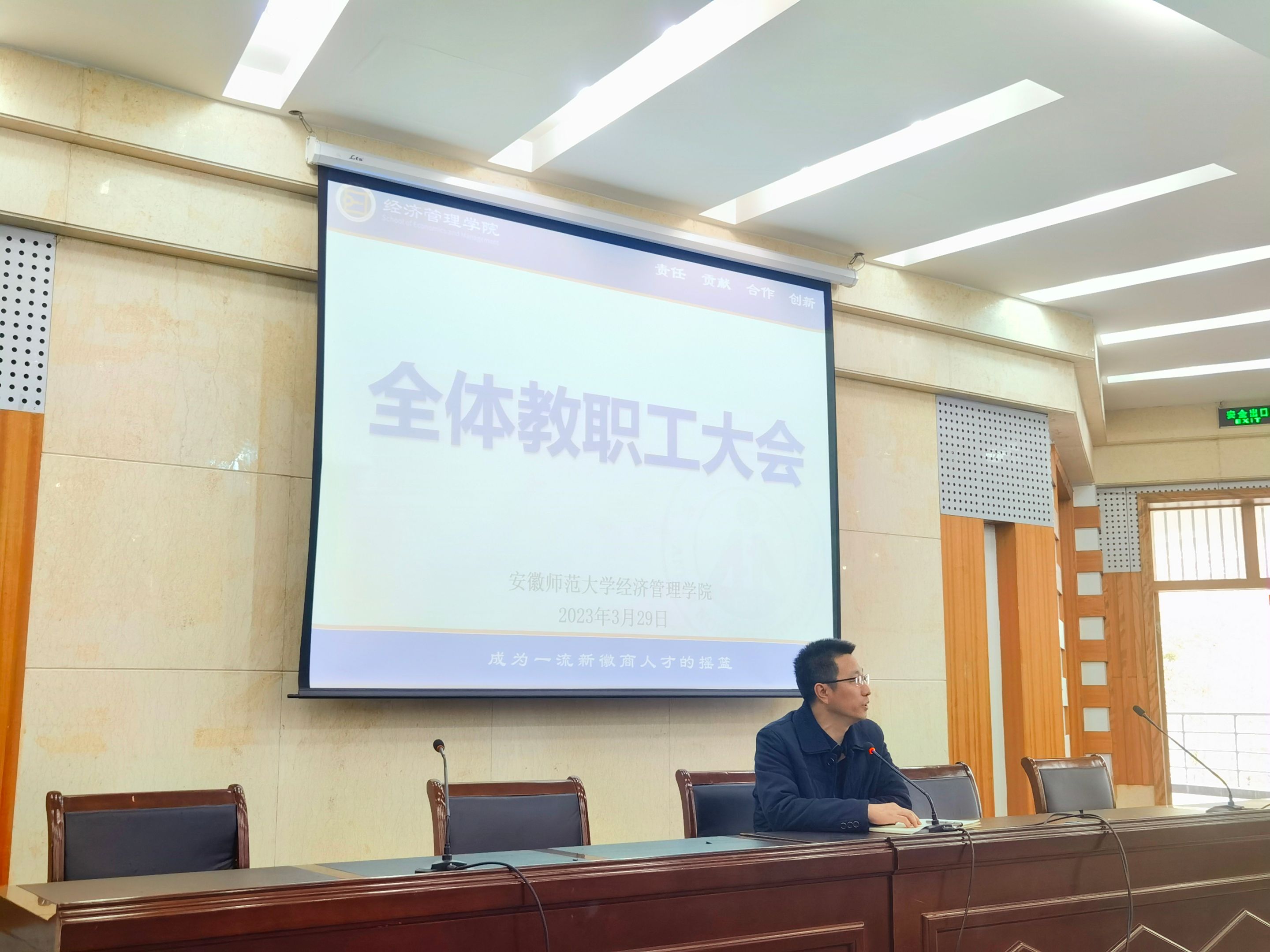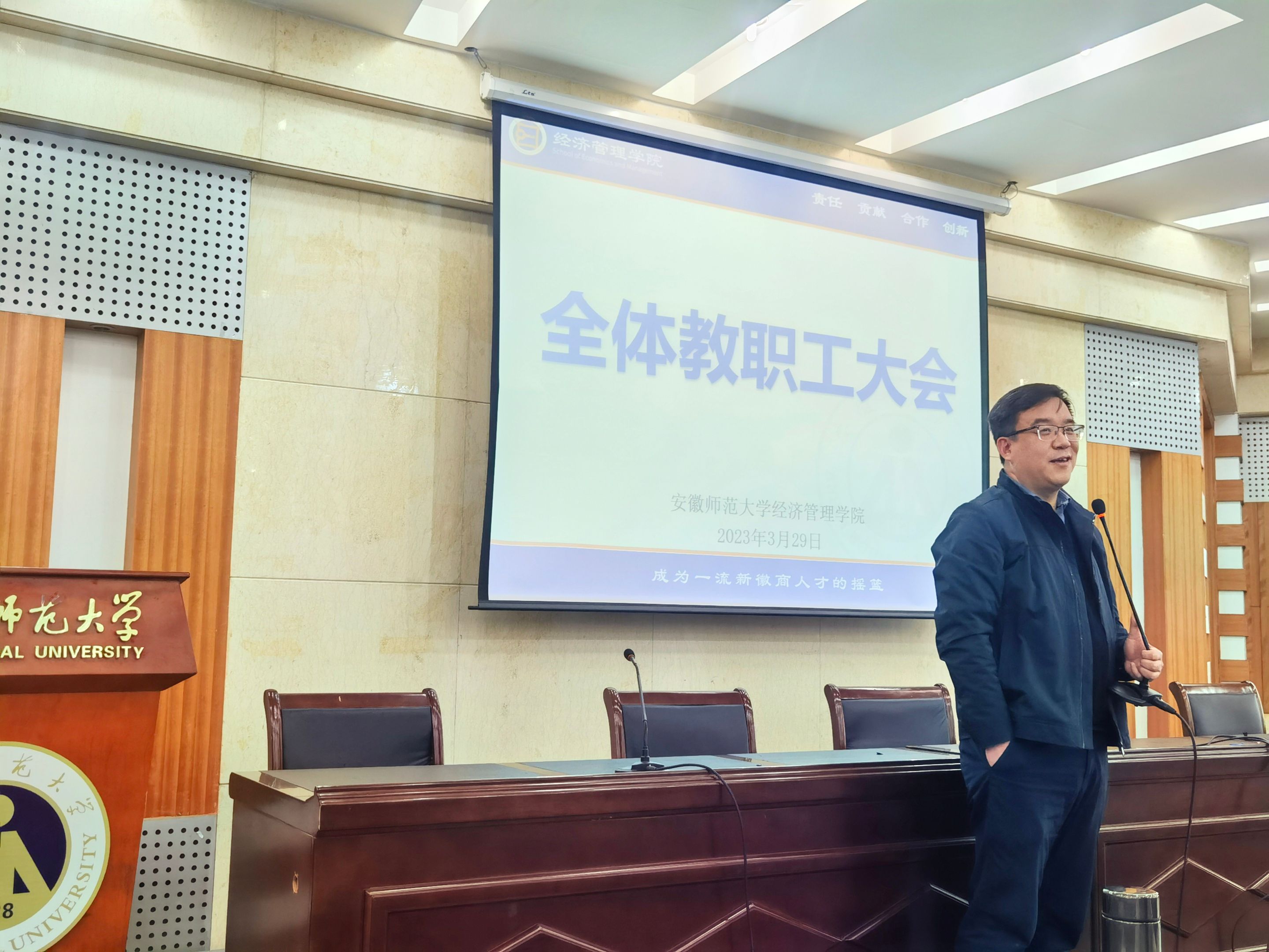 公司党委书记乔静对新学期以来公司工作和师生精神面貌表示充分的肯定,对晋升职级、获奖及科研立项的教师进行表扬,他希望各位教职工再接再厉,为公司事业发展添砖加瓦。他传达了公司“新春第一会”的会议精神,并对会议上有关内容,如事业发展报告、第五轮学科评估总结分析、十四五指标调整、规划未来2-3年如何干?“两大振兴计划”实施方案任务分解等简要报告。他强调要继续落实从严治党、党风廉政建设和工作纪律,尤其是政治安全和师德师风问题带来的安全稳定隐患,着重提醒在座教师校内邀请外来人员讲座、报告及教师外出讲学申报审核制度。同时,对于近期公司党建工作他表示肯定,尤其是公司经济金融支部进入公司拟推荐安徽省第二批“双创”支部公示,这是一次突破!最后,对于赭山校区凤凰山宿舍区、西大门拆迁工作,简单介绍本次拆迁背景等基本情况,提醒教职工不要轻易发表非理性言论,全力主持公司本次拆迁工作。
