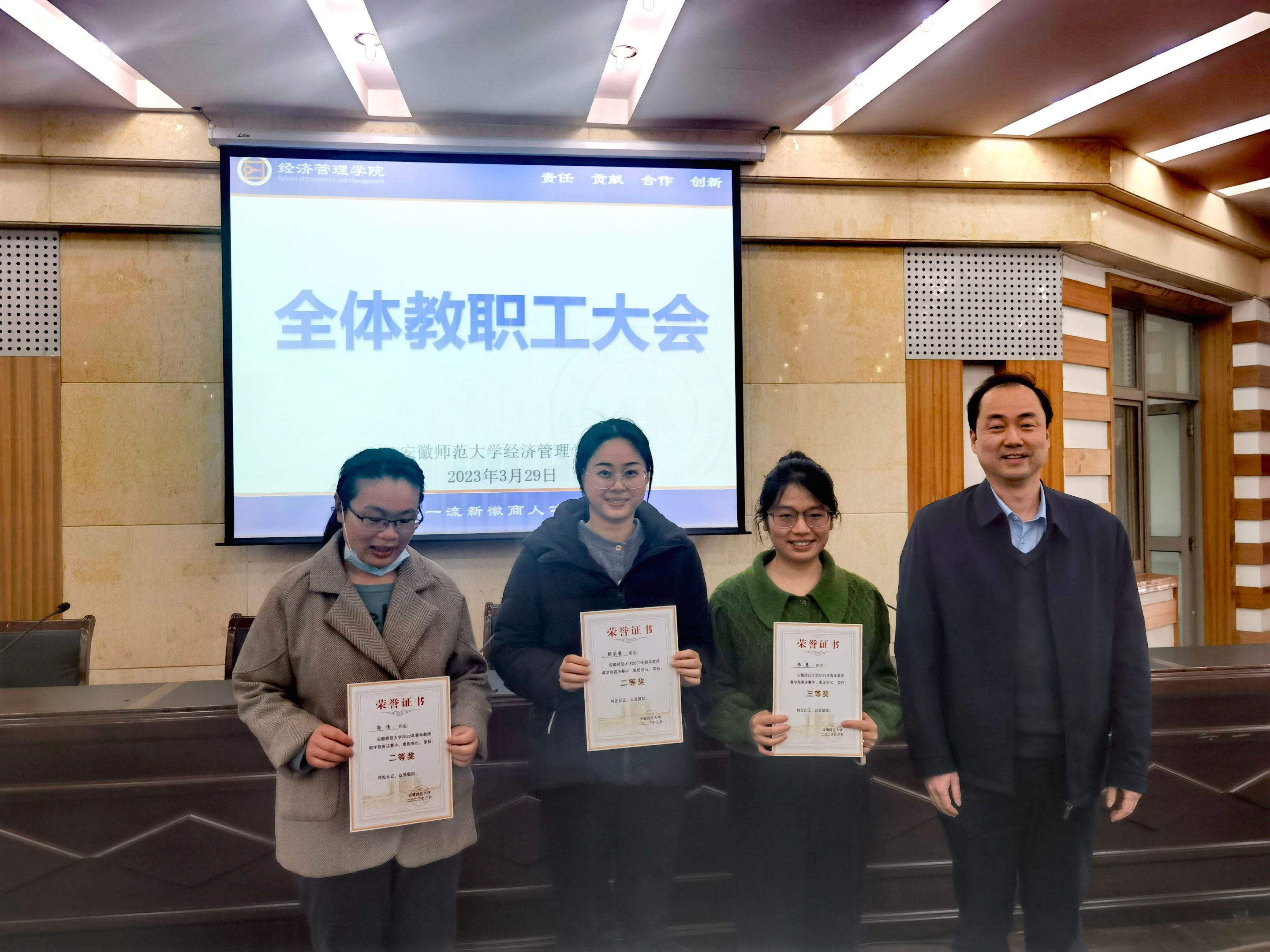 公司党委副书记、纪委书记陈刚锋在会上重点强调了研究生复试期间的纪律要求,之后他通报了近期2023届毕业班员工就业情况,并希望各位教职工继续做好未就业员工的帮扶工作,帮助员工高质量就业。副经理马长伟宣读了校教务处对于教学事故的处理办法,再次提醒与会教师重视教学规范、评卷规范,对于本科生导师制、论文指导和实习见习要充分发挥主观能动性,与员工保持联系。并对获得公司青年教师教学竞赛奖的张荣馨、张慧、郭倩表示祝贺,乔静为三位获奖老师颁发证书。副经理伍旭中就公司科研项目申报情况进行通报,继续鼓励全体教师积极申报课题,用心做好科学研究,并强调了即将到来的研究生复试工作要求。