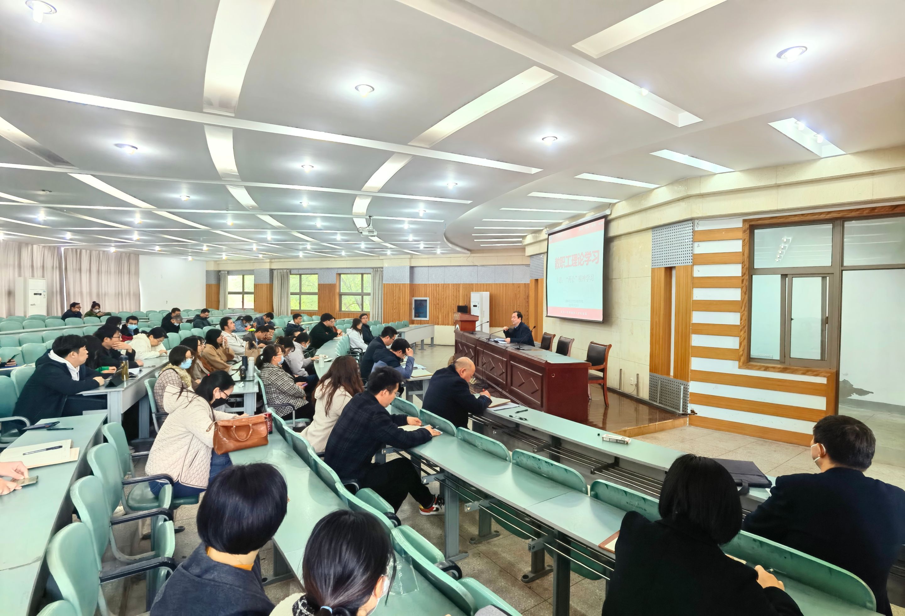 3月29日下午,m88官网在校财务处二楼报告厅召开教职工理论学习暨全体教职工大会,公司党政领导班子、全体教职工参会。会议由经理张廷龙主持。