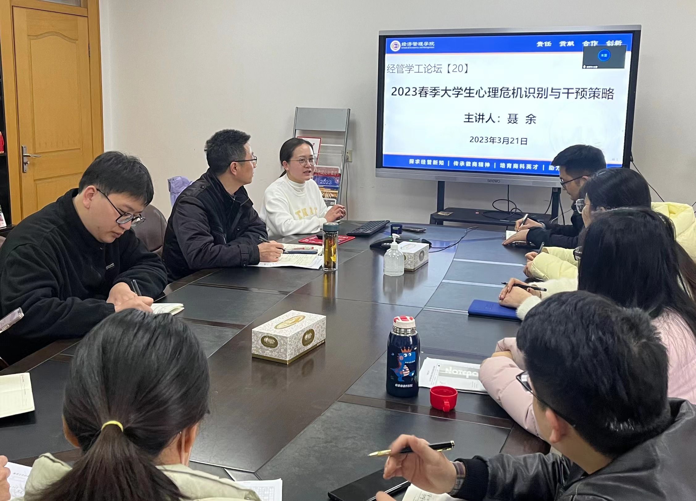 聂余围绕“识别心理危机员工的七种方法”“识别员工心理危机的七条线索”“发现员工心理出现问题的八个异常表现”这三个主题,分条缕析的讲解了辅导员工作实际中常见的问题及应对方式。随后,聂余提出“心理危机员工应对策略八问”,结合员工心理危机干预典型案例,详细阐述了如何依法依规做好员工心理危机的干预、转介、休学、家校沟通、校医联合等工作。讲座最后,聂余与辅导员进行了深入探讨、交流,依次分析、回答了辅导员心理辅导工作中具体的工作案例及问题。