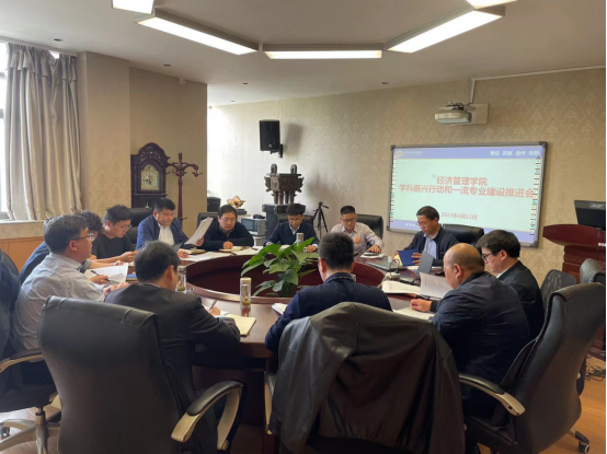 会议第一项内容是由两位学位点点长汇报工商管理和理论经济学两个学科振兴计划的落实情况与执行中存在的困难。徐飞与余吉祥分别介绍了目前团队建设的详细情况,汇报了围绕建设目标具体实施过程中的实际问题。随后,各系主任就计划实施情况里的具体问题进行了深入讨论。伍旭中进行了补充说明,并指出执行过程中的注意事项。乔静强调,在新的大形势下应当把握好机遇与挑战,铆钉目标不放松,突破传统工作方法,盯人盯项目,争取实现行动目标。张廷龙在总结中指出,在坚持目标的前提下,各系主任在人才引进上要关注特别优秀的博士、积极引进五类人才,利用好公司柔性引进制度、三年预聘制度等相关政策。