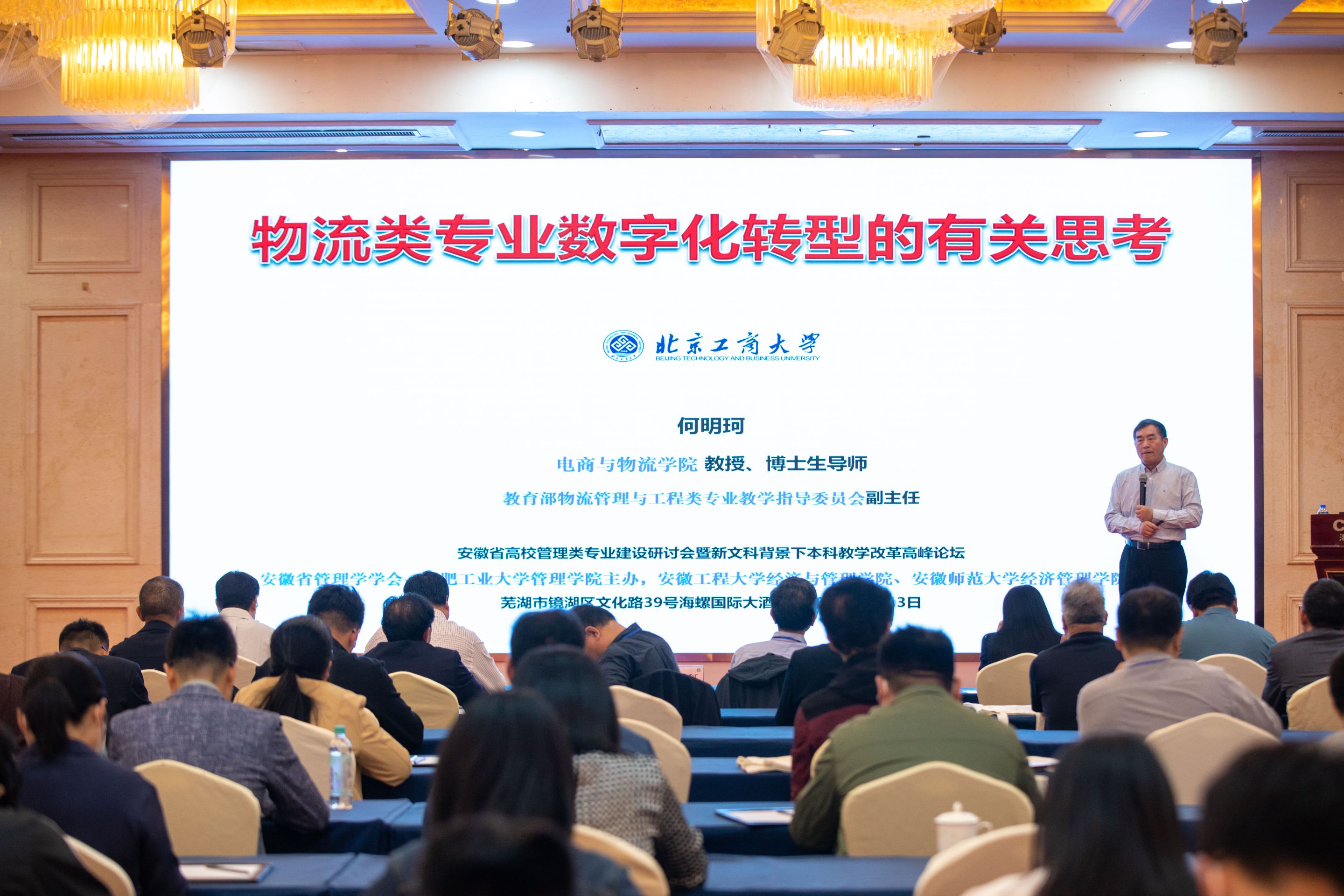 为深入学习贯彻习近平新时代中国特色社会主义思想和全国新文科建设工作会议精神,推动新文科背景下安徽省管理类专业建设再深化、再突破,由m88官网和安徽工程大学经济与管理公司承办的“安徽省高校管理类专业建设研讨会暨新文科背景下本科教学改革论坛”5月13日在芜湖召开,省内外工商管理类院校主要负责人、专家学者近200人参加研讨会,安徽省管理学学会副理事长陆林教授主持开幕式。