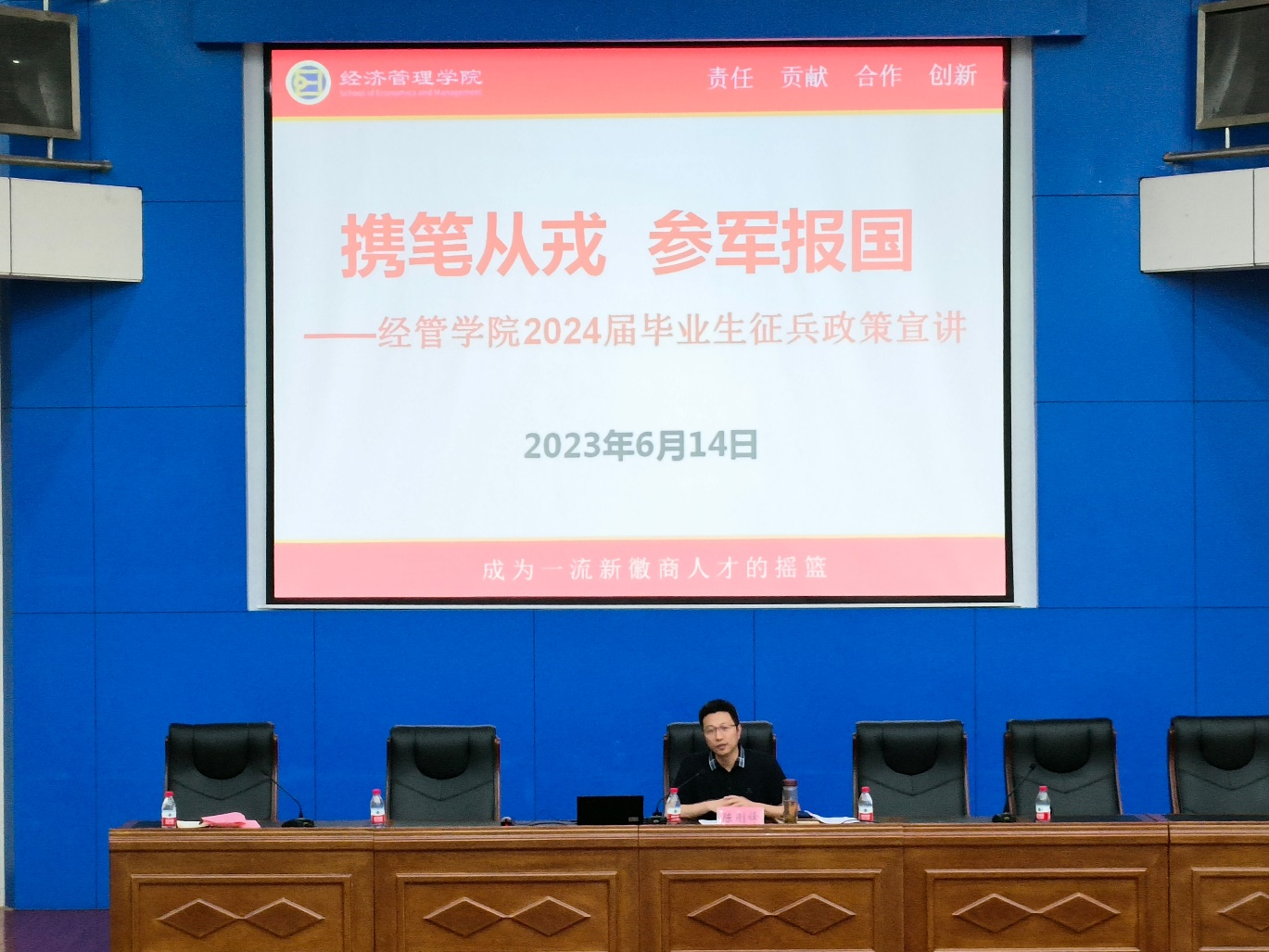 会议中,陈刚锋围绕“为什么参军入伍”、“如何报名入伍”、“入伍的政策待遇”三个方面,开展参军入伍政策解读。他从政治责任、祖国号召、成才途径三个方面向大家讲述老员工应征入伍的重要价值,结合军旅生活实例具体列举十个方面的重要意义。接着,他从“两征两退”、征集条件、征集流程、报名途径、入伍时间安排等方面全面解读报名入伍条件和流程。最后,陈刚锋对入伍后部队发展、学业优待政策、经济优待政策、退役后优待政策进行了讲解。他勉励同学们积极响应党和国家号召,携笔从戎,勇担重任,挑战自我、磨练自我,让火热的青春在绿色军营中绽放绚丽之花。