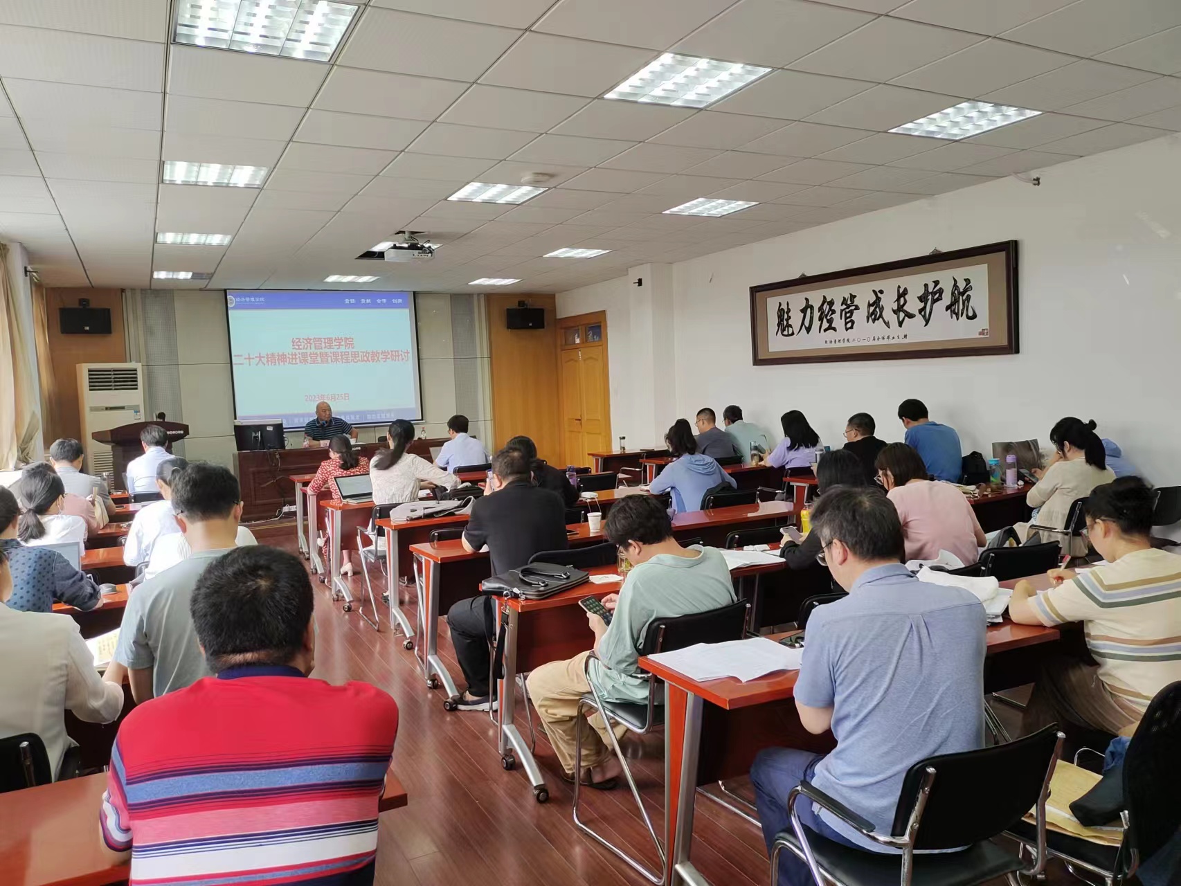 论坛第四阶段,安徽省教学名师,省级教学团队“马克思主义政治经济学”负责人,安徽省首届青年教师教学基本功大奖赛决赛“一等奖”获得者伍旭中教授组织大家进行“二十大精神进课堂”暨课程思政教学研讨。伍旭中首先介绍了课程思政建设的必要性和本质要求,分享了“马克思主义政治经济学”省级教学团队进行课程思政建设的经验。随后,徐飞、严瑞丽、胡倩燕等9位老师等汇报了各自课程思政建设的思路与案例。
