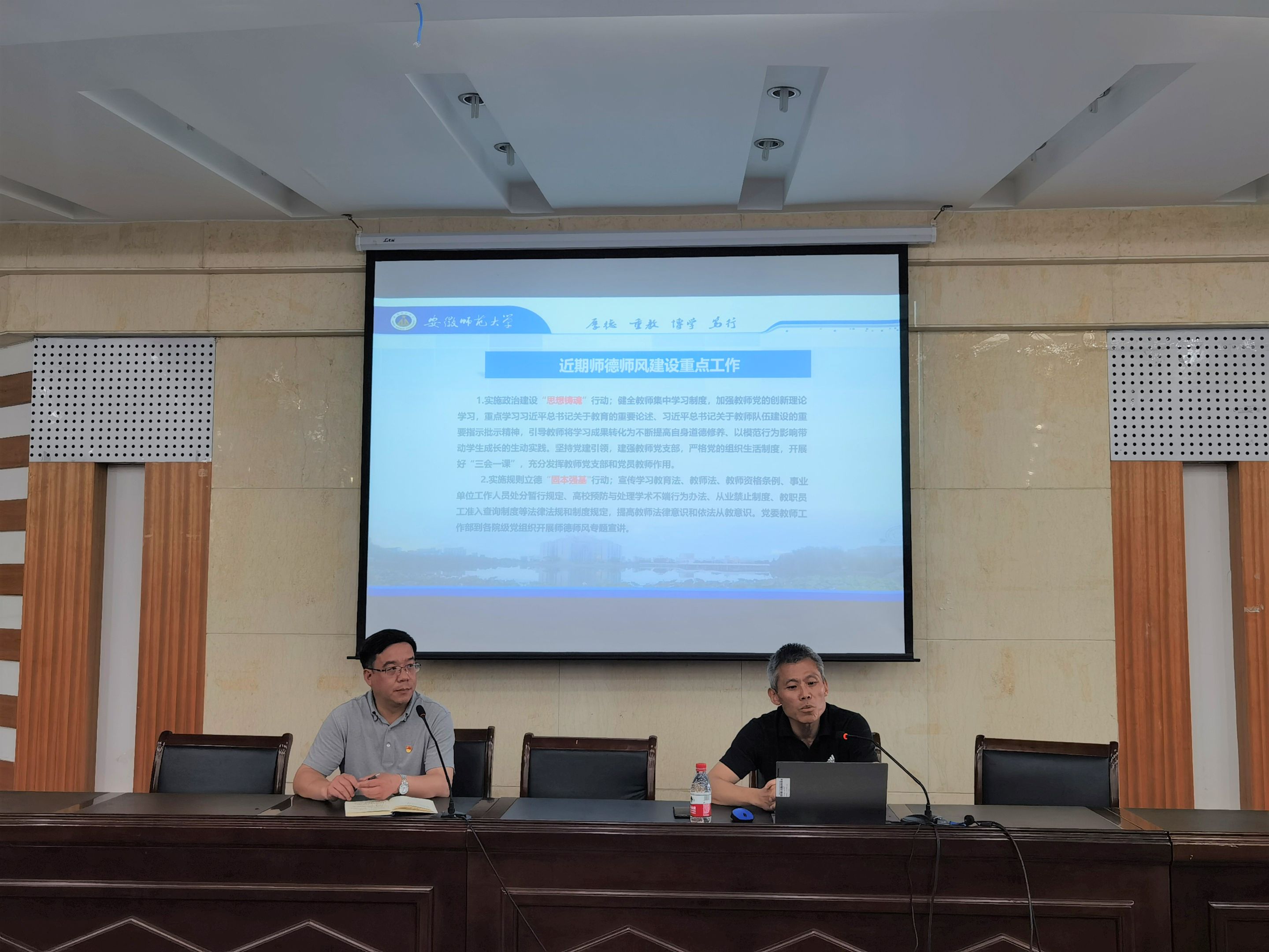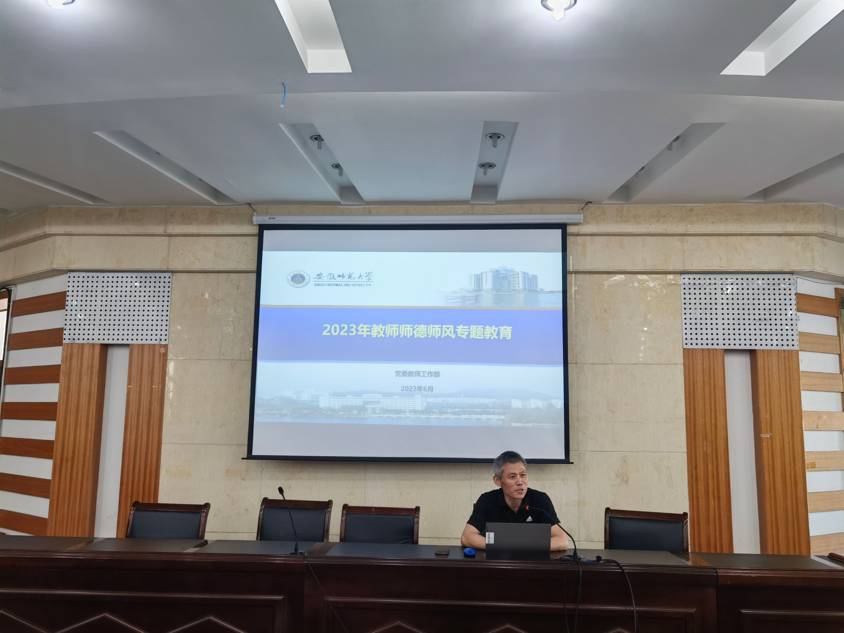 2023年6月28日下午,m88官网在财务处二楼报告厅组织开展师德师风专题教育,公司人事处副处长梁齐军受邀做师德师风教育专题报告,副经理伍旭中作科研诚信专题宣传教育。会议由公司党委副书记、经理张廷龙主持,全体教职工参加。