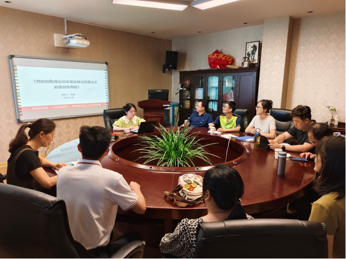 最后,支部纪律委员张慧以《党的创新理论对丰富发展马克思主义的原创性贡献》为题,讲授主题教育专题党课。张慧系统梳理了党的创新理论原创性贡献的内涵,主要表现为确立观察中国特色社会主义历史方位的新时代观、总结“两个结合”作为坚持和发展马克思主义的科学方法论、提炼以“六个必须坚持”为核心的原创性世界观方法论和创新发展马克思主义现代化理论等四个方面。学习阅读《习近平著作选读》,需要支部教工党员在具体篇章中深刻领会习近平新时代中国特色社会主义思想的重要意义,从思想上正本清源、固本培元,筑牢信仰之基、把稳思想之舵。