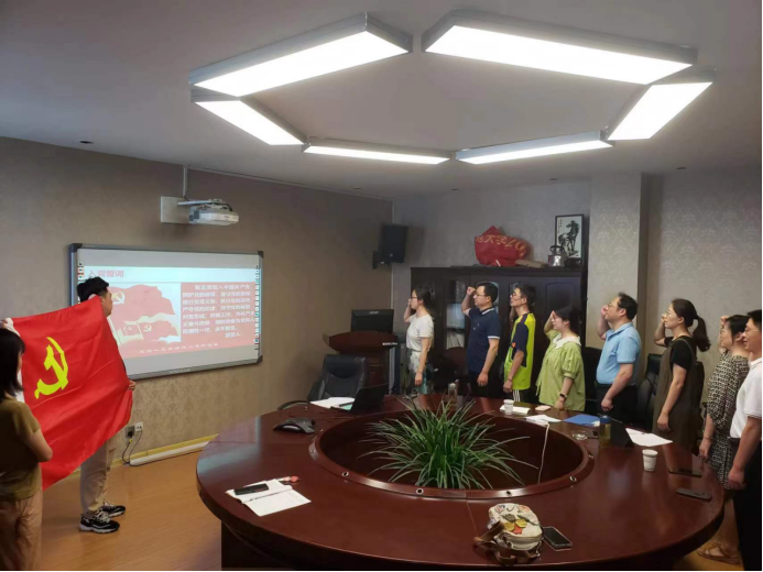 为了传承红色基因,追逐崭新未来。首先,支部教工党员集体观看了献礼影片,通过回顾党的光辉历程和波澜壮阔的百年征程,感悟革命先烈在艰苦卓绝的环境中奋勇拼搏、舍生忘死的伟大气节和崇高精神,坚定了支部教工党员永远跟党走的信念,让红色精神薪火相传。通过一曲《我宣誓》,支部教工党员重温入党初心。随后,支部教工党员高举右拳,面向鲜红的党旗,在领誓人支部宣传委员韩笑的带领下,重温入党誓词。支部教工党员情绪激扬,字字铿锵,在庄严的宣誓中,每位教工党员都接受了一次深刻的思想洗礼,理想信念更加坚定,进一步强化了对党忠诚、全心全意为人民服务的使命意识。