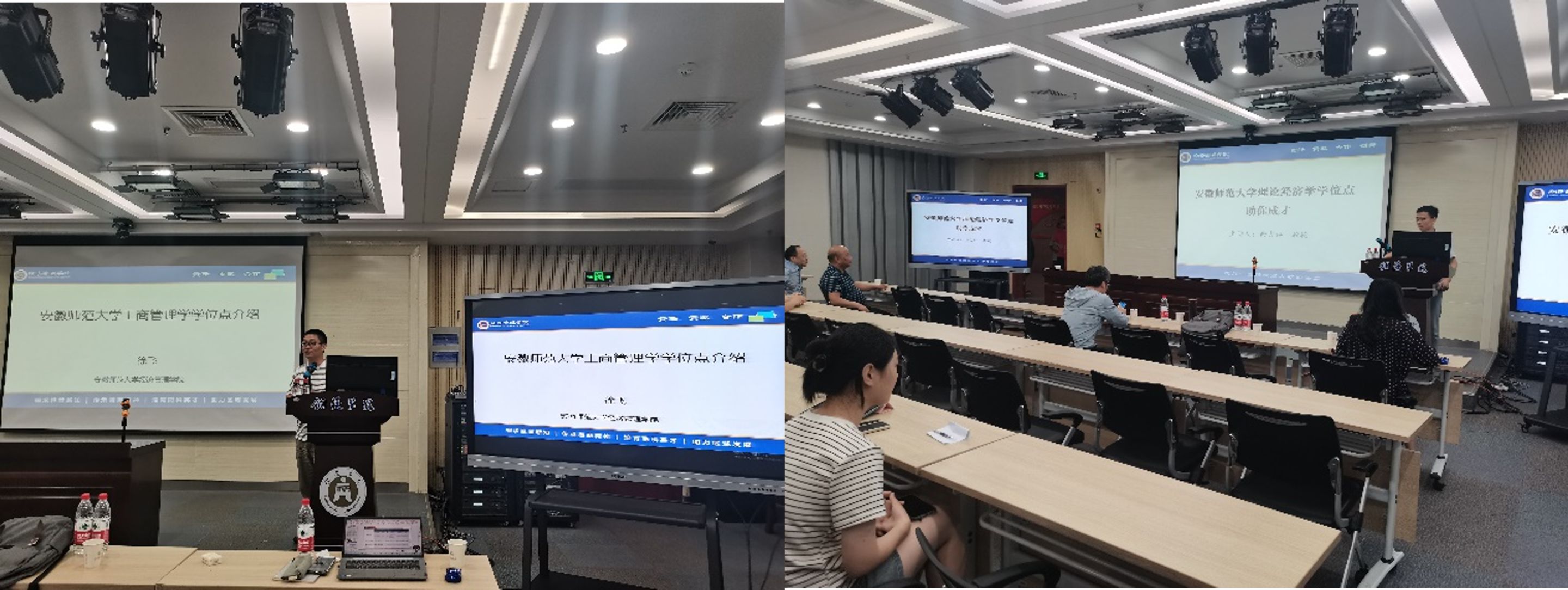 公司理论经济学学位点负责人余吉祥教授、工商管理学学位点负责人徐飞副教授、金融工程专硕学位点钱瑞梅副教授、会计专硕学位点负责人汪洋副教授分别就各学位点发展历程、团队力量、人才培养特色、毕业生就业去向、招考基本要求等进行了详细介绍,并与在场的同学们就研究生报考事宜进行现场交流。有数据分析、有图片分享、有交流互动,取得了较好的效果。